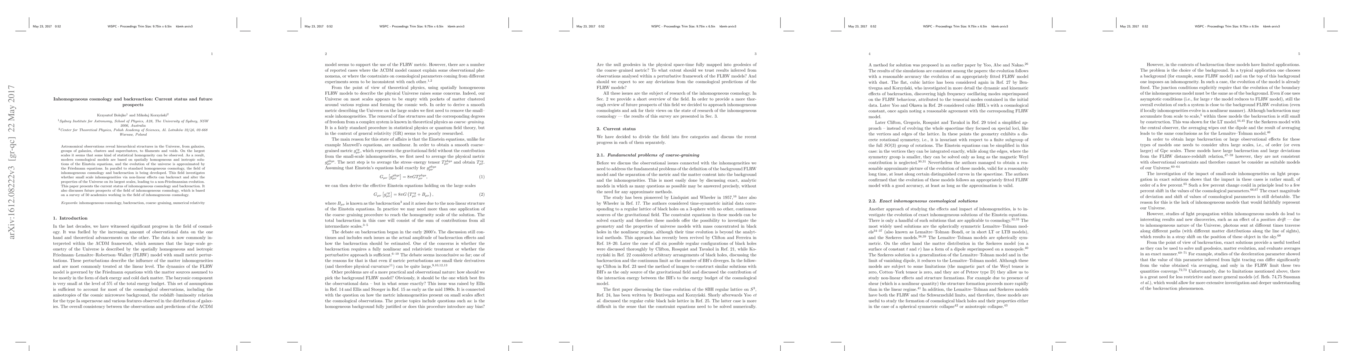 Astronomical observations reveal hierarchical structures in the Universe, from galaxies, groups of galaxies, clusters and superclusters, to filaments and voids. On the largest scales it seems that some kind of statistical homogeneity can be observed. As a result, modern cosmological models are based on spatially homogeneous and isotropic solutions of the Einstein equations, and the evolution of the universe is approximated by the Friedmann equations. In parallel to standard homogeneous cosmology, the field of inhomogeneous cosmology and backreaction is being developed. This field investigates whether small scale inhomogeneities via non-linear effects can backreact and alter the properties of the Universe on its largest scales, leading to a non-Friedmannian evolution. This paper presents the current status of inhomogeneous cosmology and backreaction. It also discusses future prospects of the field of inhomogeneous cosmology, which is based on a survey of 50 academics working in the field of inhomogeneous cosmology.
