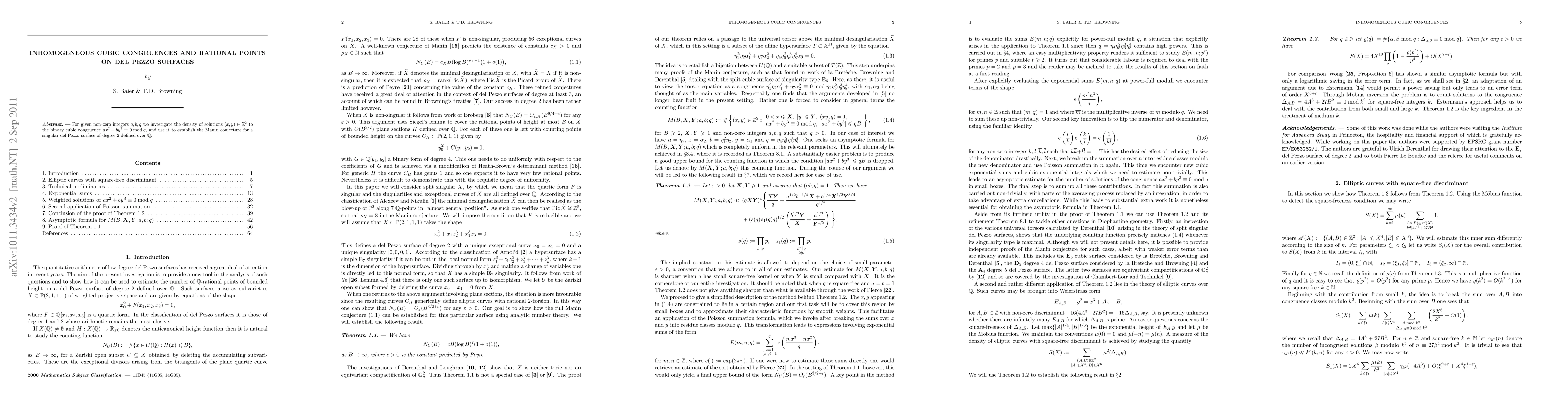 For given non-zero integers a,b,q we investigate the density of integer solutions (x,y) to the binary cubic congruence ax^2+by^3=0 (mod q). We use this to establish the Manin conjecture for a singular del Pezzo surface of degree 2 defined over the rationals and to examine the distribution of elliptic curves with square-free discriminant.