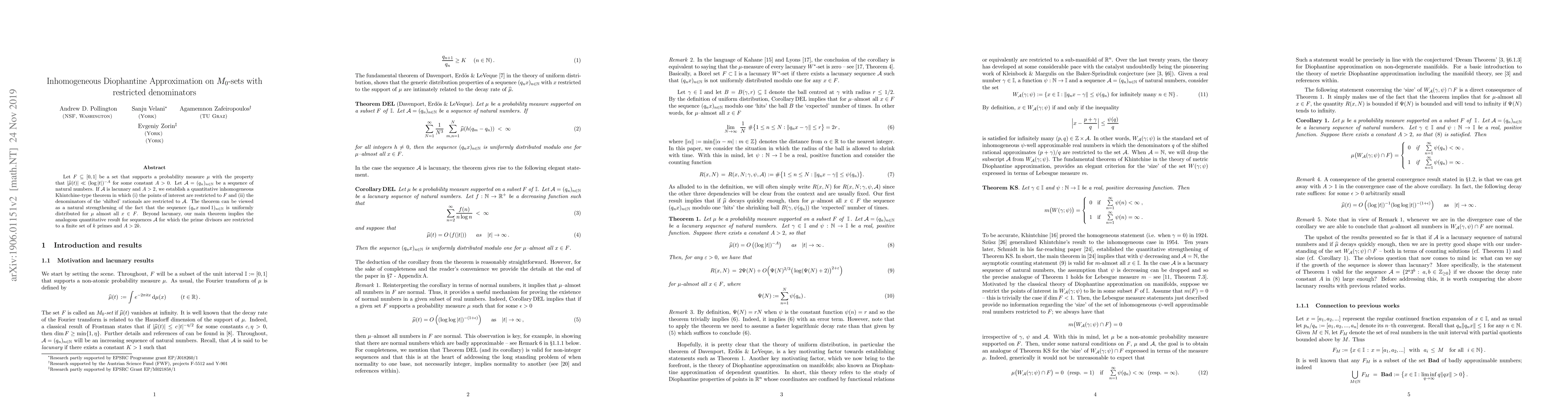Let $F \subseteq [0,1]$ be a set that supports a probability measure $\mu$ with the property that $ |\widehat{\mu}(t)| \ll (\log |t|)^{-A}$ for some constant $ A > 0 $. Let $\mathcal{A}= (q_n)_{n\in \mathbb{N}} $ be a sequence of natural numbers. If $\mathcal{A}$ is lacunary and $A >2$, we establish a quantitative inhomogeneous Khintchine-type theorem in which (i) the points of interest are restricted to $F$ and (ii) the denominators of the `shifted' rationals are restricted to $\mathcal{A}$. The theorem can be viewed as a natural strengthening of the fact that the sequence $(q_nx {\rm \ mod \, } 1)_{n\in \mathbb{N}} $ is uniformly distributed for $\mu$ almost all $x \in F$. Beyond lacunary, our main theorem implies the analogous quantitative result for sequences $\mathcal{A}$ for which the prime divisors are restricted to a finite set of $k$ primes and $A > 2k$.