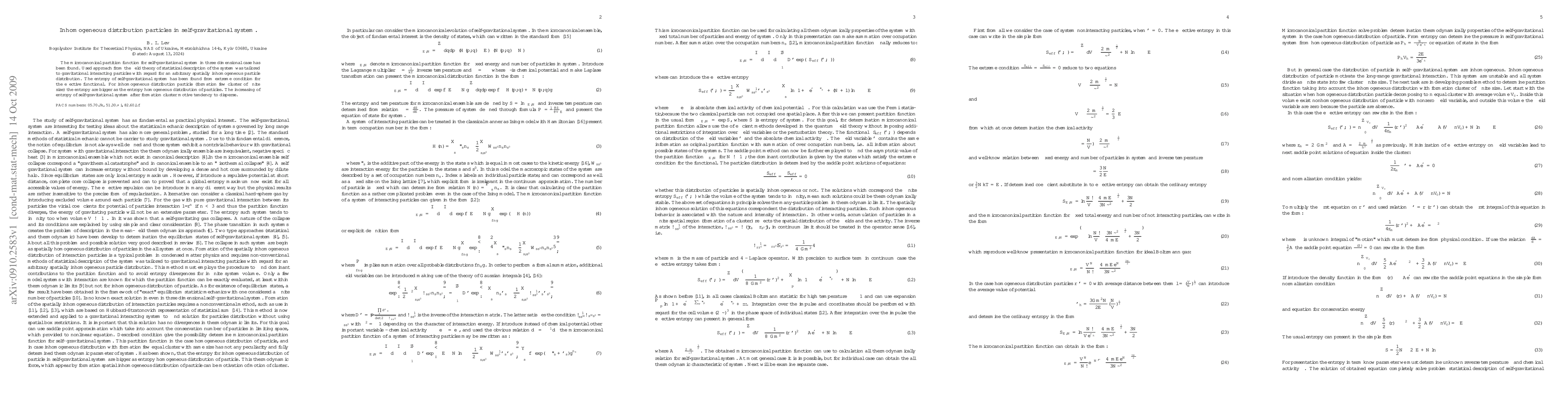 This paper derives the microcanonical partition function for a self-gravitational system, revealing that inhomogeneous particle distributions, such as clusters of finite size, have higher entropy compared to homogeneous distributions. The entropy increase after cluster formation suggests a tendency towards dispersion.
