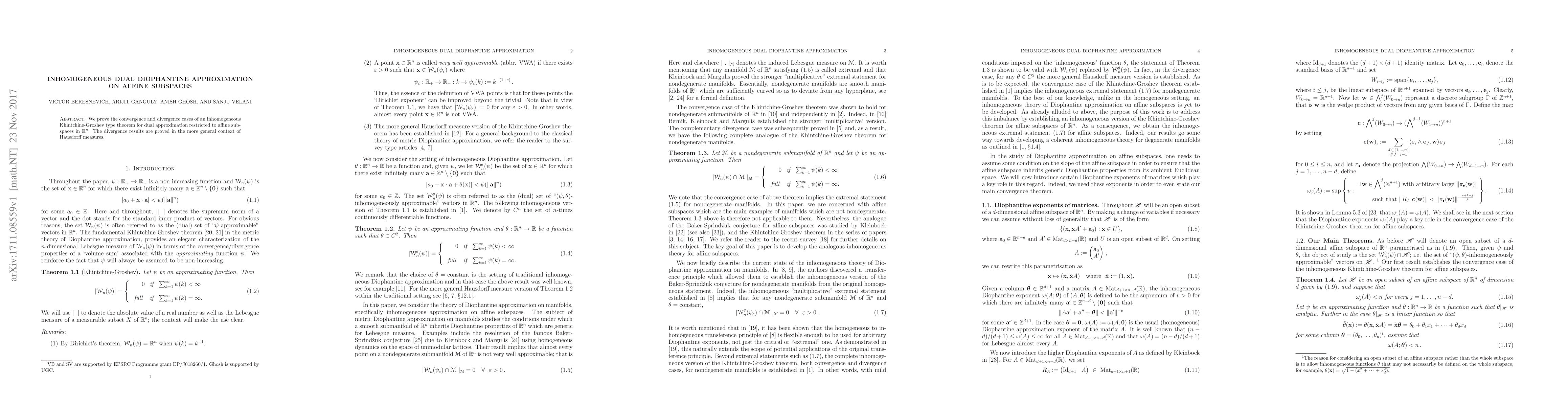 Summary: This paper establishes convergence and divergence scenarios for an inhomogeneous Khintchine-Groshev type theorem concerning dual Diophantine approximation on affine subspaces in $\mathbb{R}^n$, with divergence results extended to Hausdorff measures.