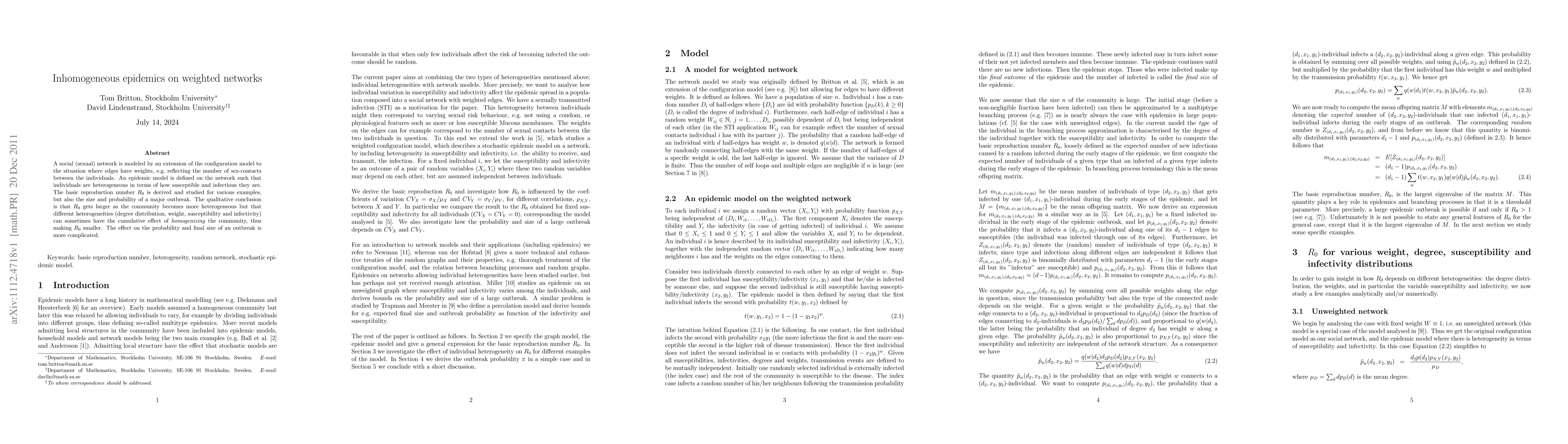 A social (sexual) network is modeled by an extension of the configuration model to the situation where edges have weights, e.g. reflecting the number of sex-contacts between the individuals. An epidemic model is defined on the network such that individuals are heterogeneous in terms of how susceptible and infectious they are. The basic reproduction number R_0 is derived and studied for various examples, but also the size and probability of a major outbreak. The qualitative conclusion is that R_0 gets larger as the community becomes more heterogeneous but that different heterogeneities (degree distribution, weight, susceptibility and infectivity) can sometimes have the cumulative effect of homogenizing the community, thus making $R_0$ smaller. The effect on the probability and final size of an outbreak is more complicated.