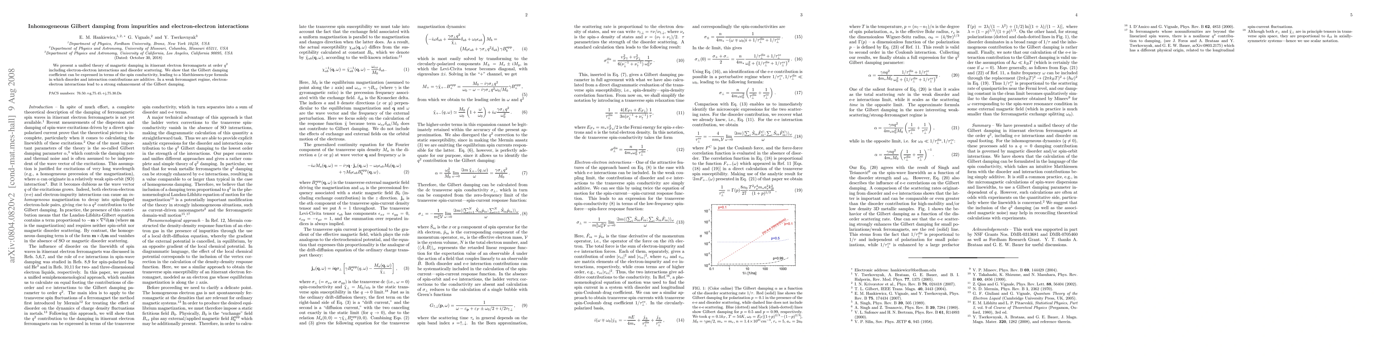 Summary: This paper develops a theory for magnetic damping in itinerant electron ferromagnets, revealing that the Gilbert damping coefficient is additively influenced by disorder and electron-electron interactions, with significant damping enhancement in weak ferromagnets due to interactions.