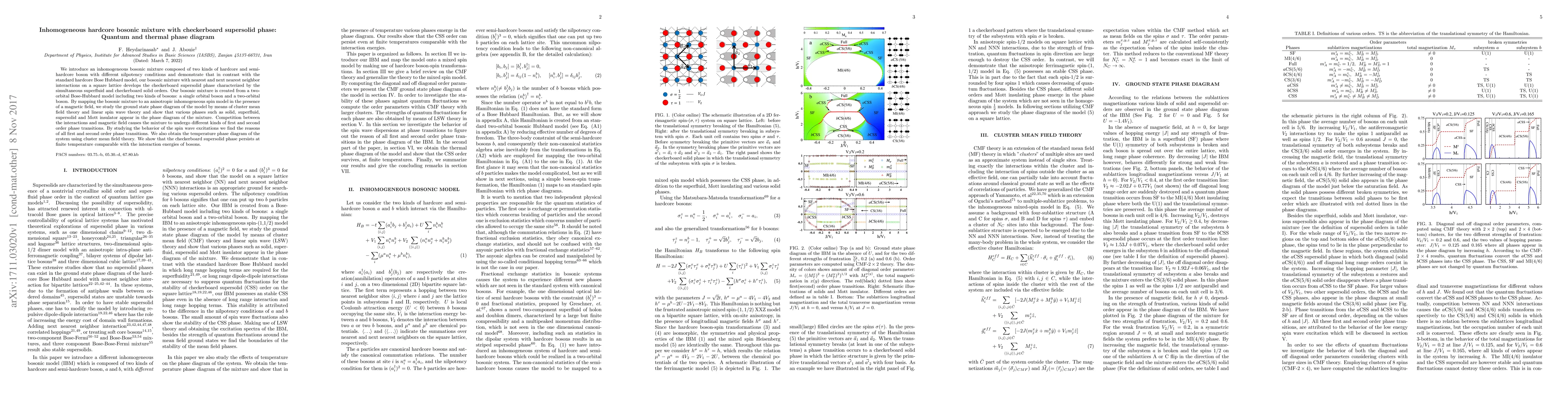 This paper investigates an inhomogeneous bosonic mixture leading to a checkerboard supersolid phase on a square lattice, characterized by both superfluid and checkerboard solid orders. The study reveals a variety of phases including solid, superfluid, supersolid, and Mott insulator through cluster mean field theory and linear spin-wave theory, with phase transitions driven by interaction and magnetic field competition.