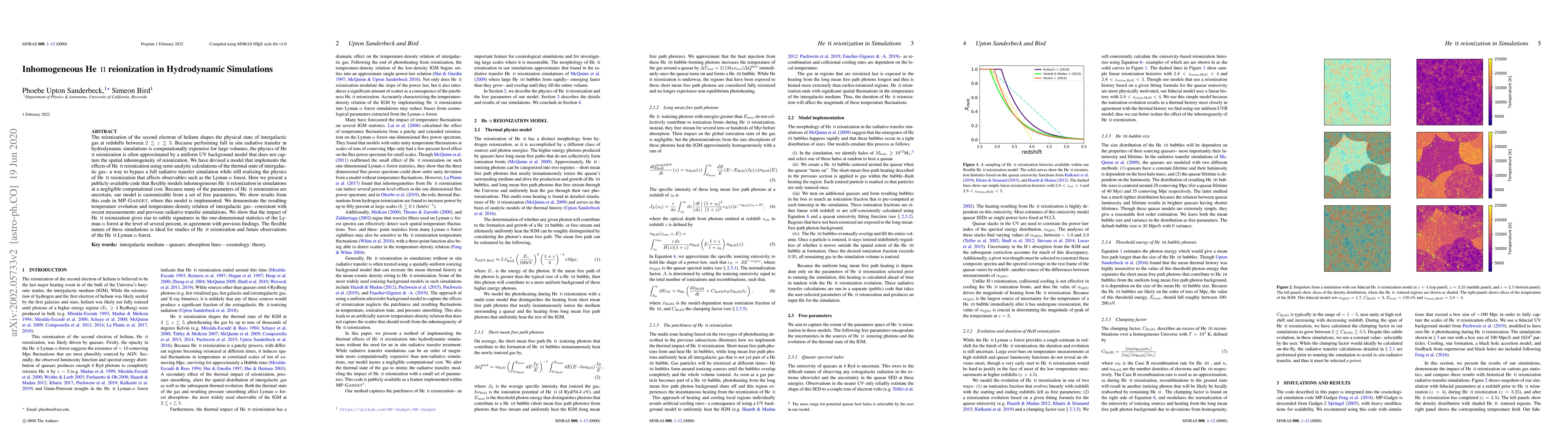 This paper presents a computationally efficient model for simulating inhomogeneous HeII reionization in hydrodynamic simulations, bypassing full radiative transfer. The model captures the thermal state of intergalactic gas and reproduces the subtle signatures in the Lyman alpha forest, consistent with previous simulations and observations.