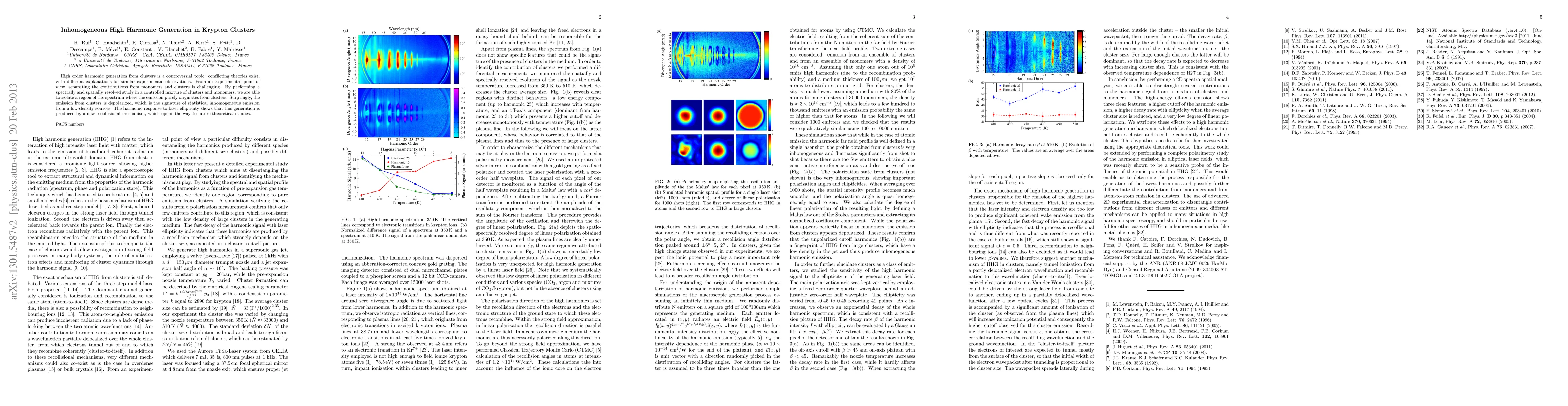 Researchers studied high-order harmonic generation in krypton clusters and found that cluster emission is depolarized, indicating statistical inhomogeneous emission from a low-density source. This new mechanism may lead to future theoretical studies.