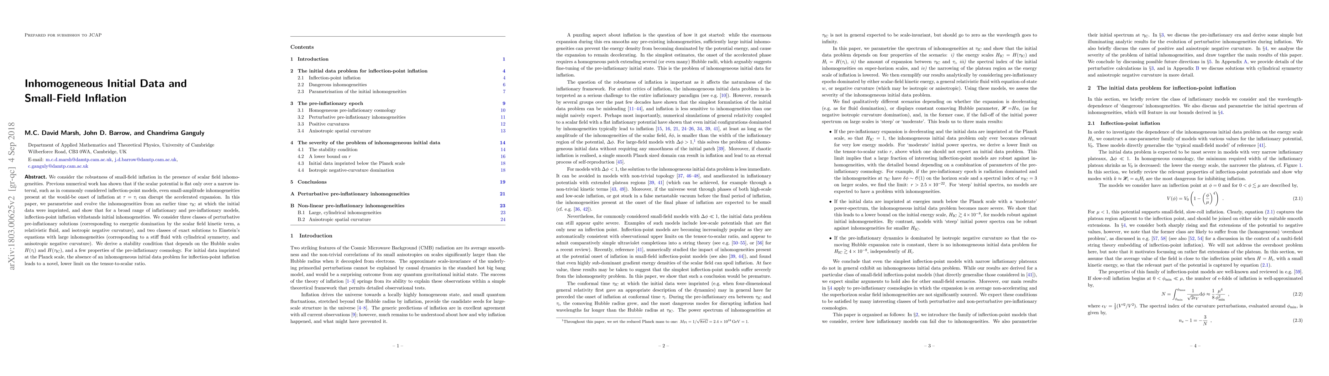 We consider the robustness of small-field inflation in the presence of scalar field inhomogeneities. Previous numerical work has shown that if the scalar potential is flat only over a narrow interval, such as in commonly considered inflection-point models, even small-amplitude inhomogeneities present at the would-be onset of inflation at $\tau = \tau_i$ can disrupt the accelerated expansion. In this paper, we parametrise and evolve the inhomogeneities from an earlier time $\tau_{IC}$ at which the initial data were imprinted, and show that for a broad range of inflationary and pre-inflationary models, inflection-point inflation withstands initial inhomogeneities. We consider three classes of perturbative pre-inflationary solutions (corresponding to energetic domination by the scalar field kinetic term, a relativistic fluid, and isotropic negative curvature), and two classes of exact solutions to Einstein's equations with large inhomogeneities (corresponding to a stiff fluid with cylindrical symmetry, and anisotropic negative curvature). We derive a stability condition that depends on the Hubble scales $H(\tau_ i)$ and $H(\tau_{IC})$, and a few properties of the pre-inflationary cosmology. For initial data imprinted at the Planck scale, the absence of an inhomogeneous initial data problem for inflection-point inflation leads to a novel, lower limit on the tensor-to-scalar ratio.