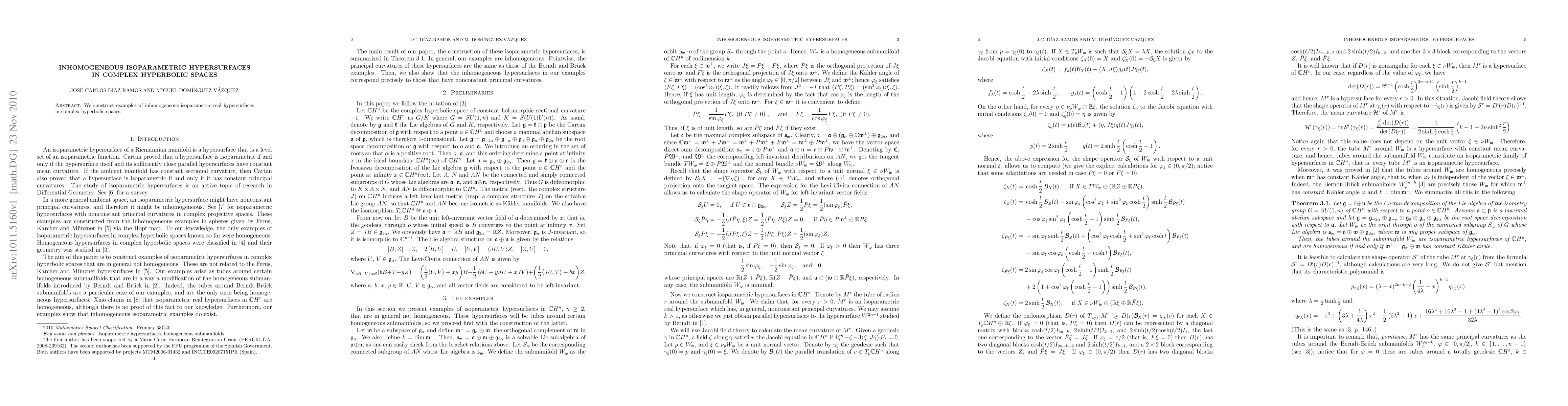 Summary: This paper presents constructions of inhomogeneous isoparametric real hypersurfaces within complex hyperbolic spaces, providing new examples of these geometric structures. The focus is on the intricate properties and constructions of these hypersurfaces in complex hyperbolic settings.