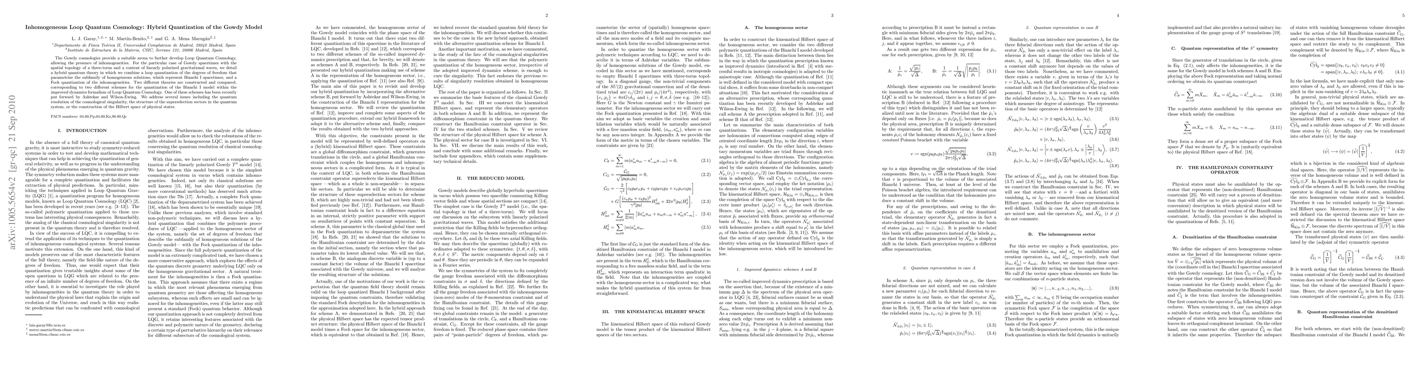 The Gowdy cosmologies provide a suitable arena to further develop Loop Quantum Cosmology, allowing the presence of inhomogeneities. For the particular case of Gowdy spacetimes with the spatial topology of a three-torus and a content of linearly polarized gravitational waves, we detail a hybrid quantum theory in which we combine a loop quantization of the degrees of freedom that parametrize the subfamily of homogeneous solutions, which represent Bianchi I spacetimes, and a Fock quantization of the inhomogeneities. Two different theories are constructed and compared, corresponding to two different schemes for the quantization of the Bianchi I model within the {\sl improved dynamics} formalism of Loop Quantum Cosmology. One of these schemes has been recently put forward by Ashtekar and Wilson-Ewing. We address several issues including the quantum resolution of the cosmological singularity, the structure of the superselection sectors in the quantum system, or the construction of the Hilbert space of physical states.