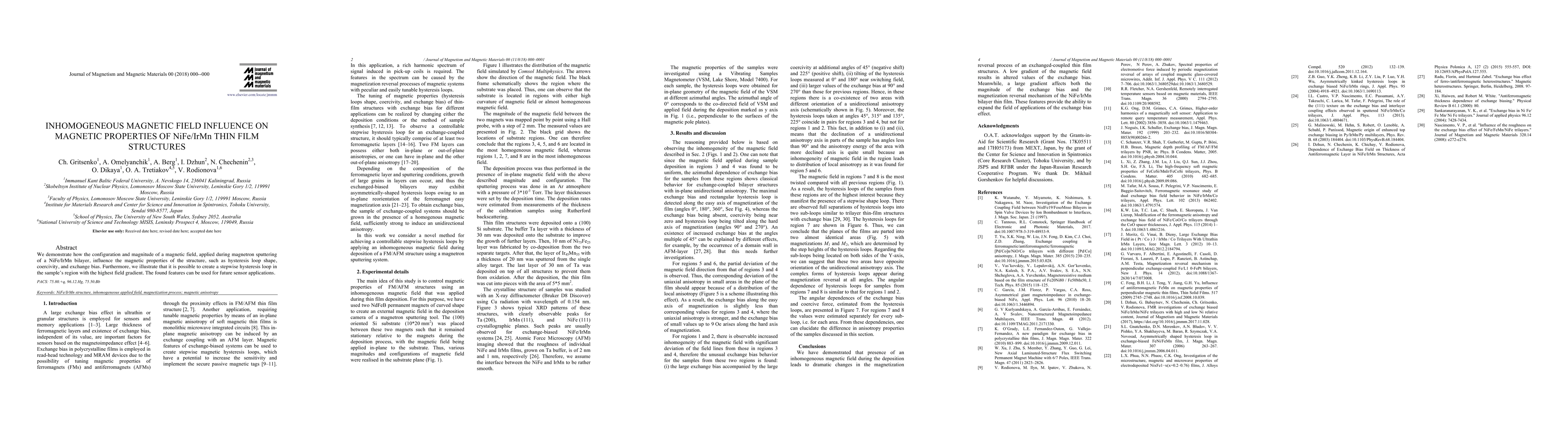 This study investigates how varying the magnetic field during the magnetron sputtering of NiFe/IrMn bilayers affects their magnetic properties, including hysteresis loop shape, coercivity, and exchange bias. The research reveals the potential to engineer a stepwise hysteresis loop in regions with the highest field gradients, suggesting promising applications for future magnetic sensors.