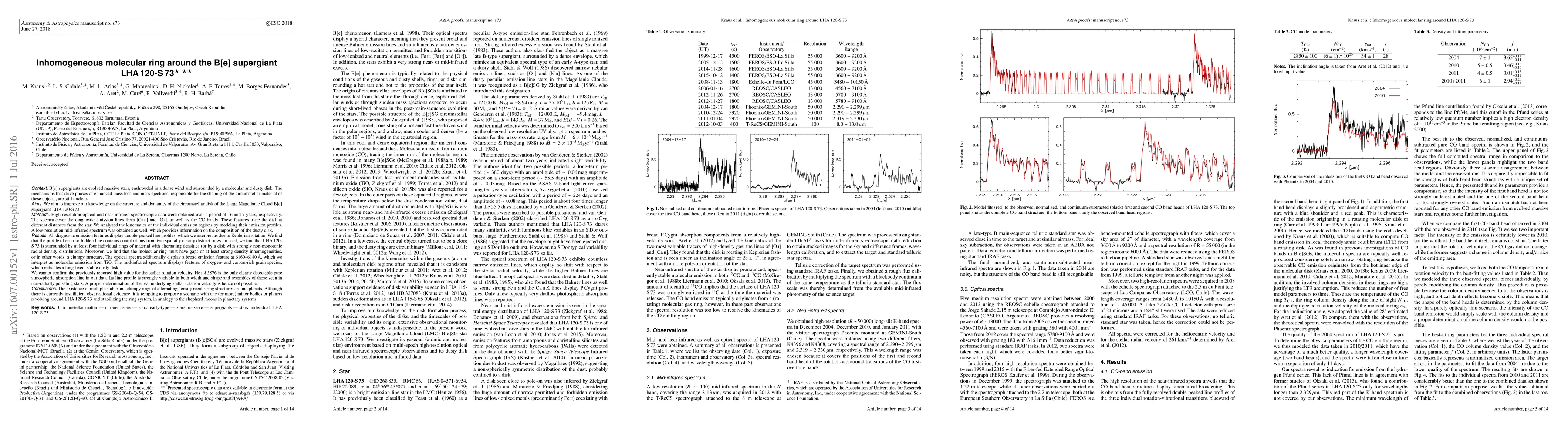 We aim to improve our knowledge on the structure and dynamics of the circumstellar disk of the LMC B[e] supergiant LHA 120-S 73. High-resolution optical and near-IR spectroscopic data were obtained over a period of 16 and 7 years, respectively. The spectra cover the diagnostic emission lines from [CaII] and [OI], as well as the CO bands. These features trace the disk at different distances from the star. We analyzed the kinematics of the individual emission regions by modeling their emission profiles. A low-resolution mid-infrared spectrum was obtained as well, which provides information on the composition of the dusty disk. All diagnostic emission features display double-peaked line profiles, which we interpret as due to Keplerian rotation. We find that LHA 120-S 73 is surrounded by at least four individual rings of material with alternating densities (or by a disk with strongly non-monotonic radial density distribution). Moreover, we find that the molecular ring must have gaps or at least strong density inhomogeneities, or in other words, a clumpy structure. The mid-infrared spectrum displays features of oxygen- and carbon-rich grain species, which indicates a long-lived, stable dusty disk. We cannot confirm the previously reported high value for the stellar rotation velocity. The line profile of HeI 5876 A is strongly variable in both width and shape and resembles of those seen in non-radially pulsating stars. A proper determination of the real underlying stellar rotation velocity is hence not possible. The existence of multiple stable and clumpy rings of alternating density recalls ring structures around planets. Although there is currently insufficient observational evidence, it is tempting to propose a scenario with one (or more) minor bodies or planets revolving around LHA 120-S 73 and stabilizing the ring system, in analogy to the shepherd moons in planetary systems.