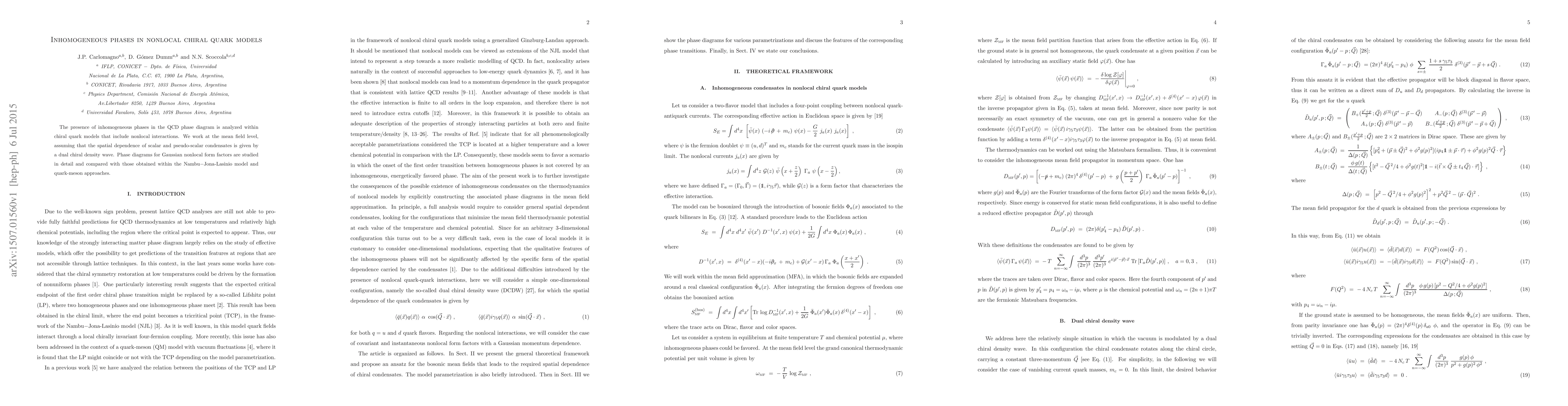 This paper investigates inhomogeneous phases in the QCD phase diagram using chiral quark models with nonlocal interactions, focusing on dual chiral density waves. Detailed phase diagrams for Gaussian nonlocal form factors are compared with results from the Nambu-Jona-Lasinio model and quark-meson approaches.