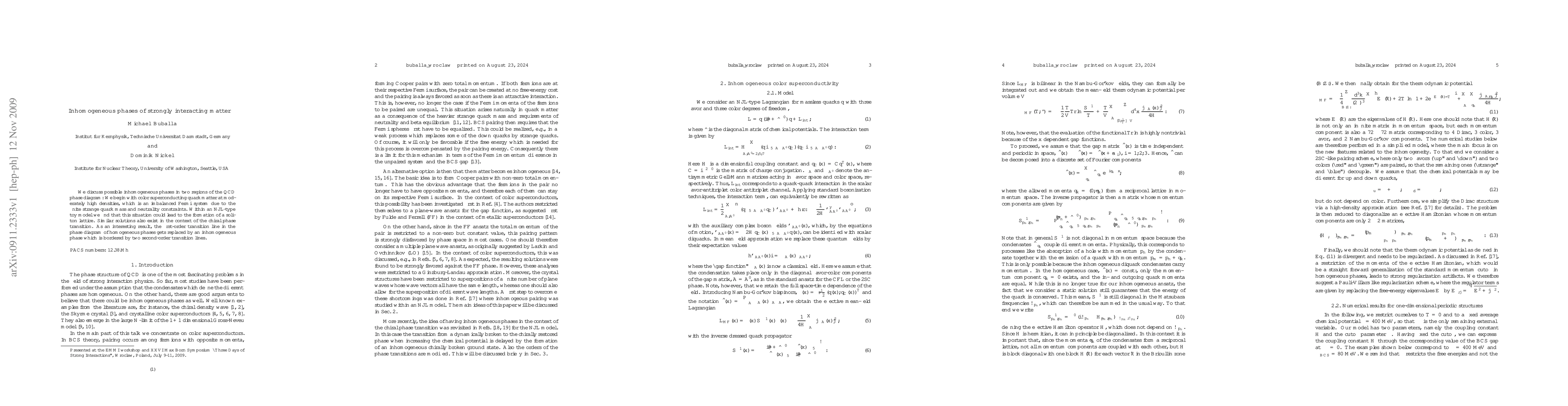 This paper explores inhomogeneous phases in the QCD phase diagram, focusing on color superconducting quark matter at high densities. It finds that an imbalanced Fermi system due to finite strange quark mass and neutrality constraints can lead to a soliton lattice formation, replacing the first-order transition line with an inhomogeneous phase bordered by two second-order transition lines.