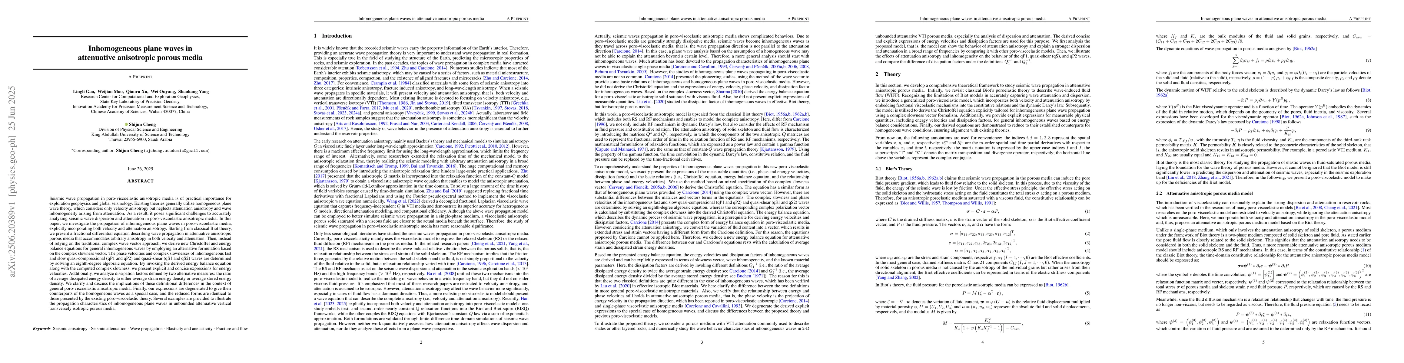 This work presents a novel approach to modeling seismic wave propagation in attenuative anisotropic porous media, which has not been previously explored.