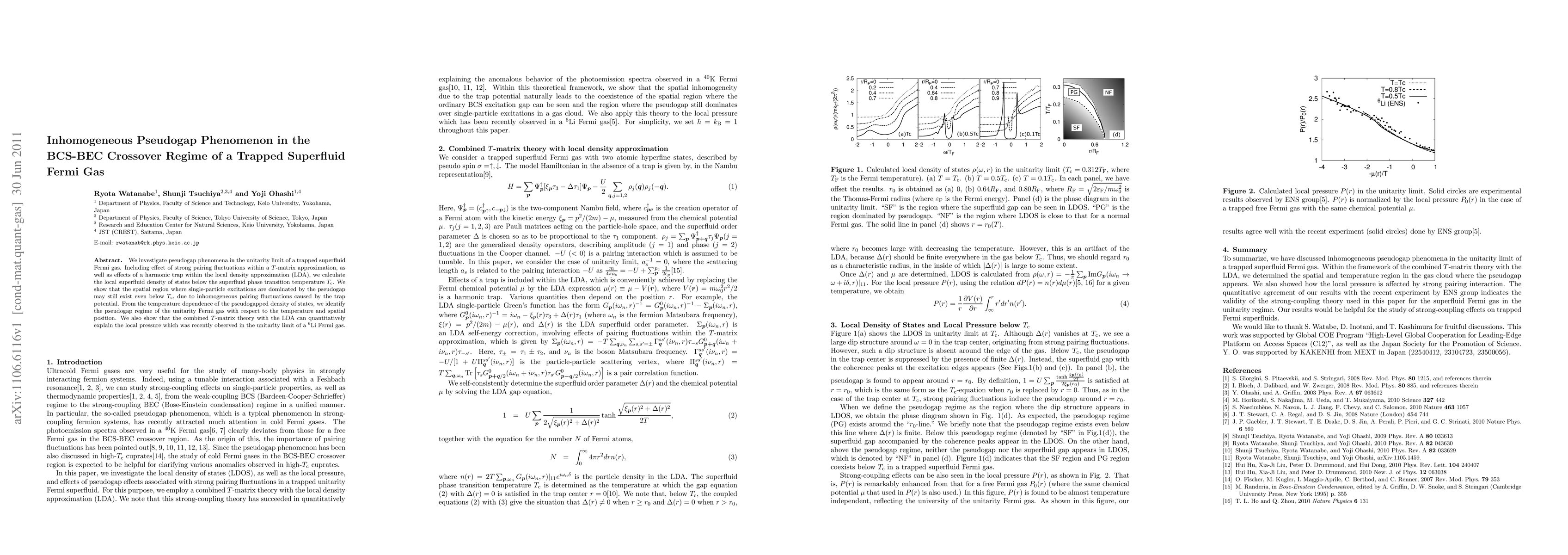 This paper explores the pseudogap phenomenon in a trapped superfluid Fermi gas, demonstrating that inhomogeneous pairing fluctuations due to the trap potential can sustain pseudogap regions below the critical temperature $T_{\rm c}$. The study combines $T$-matrix theory and local density approximation to explain the observed local pressure in a $^6$Li Fermi gas.