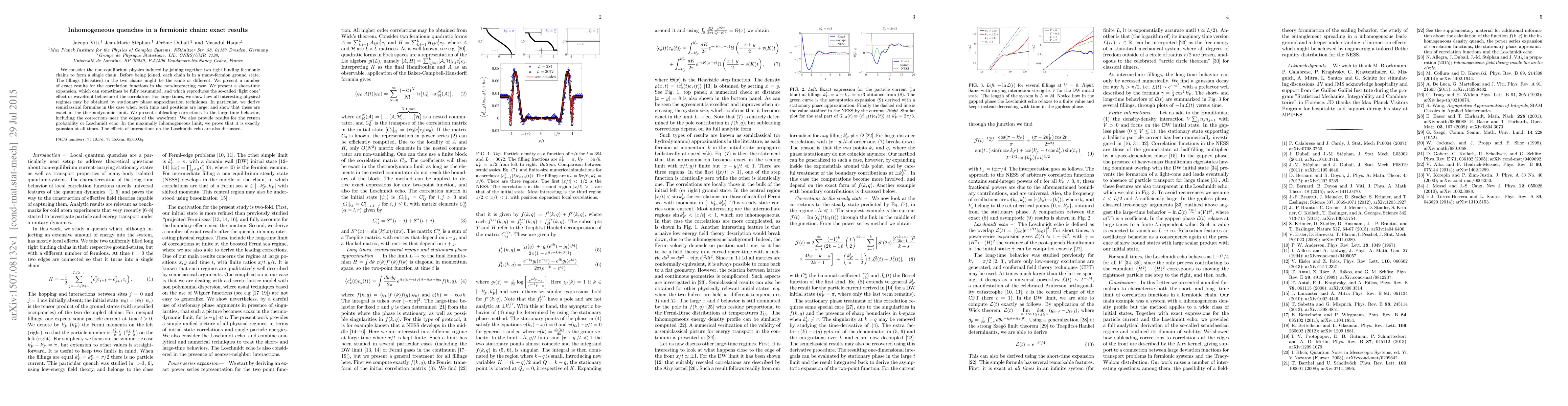 Researchers studied the behavior of fermionic chains when joined together in a non-equilibrium state, finding exact results for correlation functions, wavefront effects, and Loschmidt echo, with implications for understanding quantum many-body systems.
