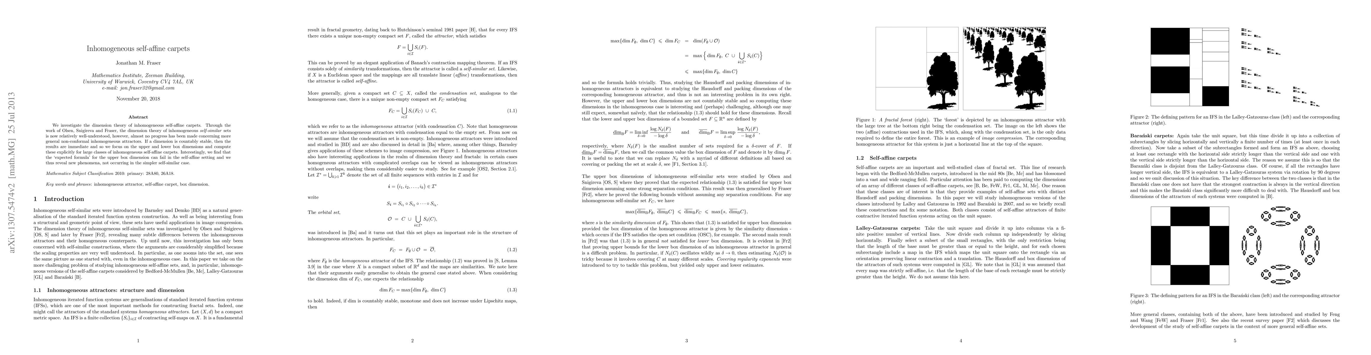 This paper investigates the dimension theory of inhomogeneous self-affine carpets, revealing that the expected formula for the upper box dimension does not always hold, presenting new phenomena compared to self-similar cases. It computes the upper and lower box dimensions explicitly for various inhomogeneous self-affine carpets.