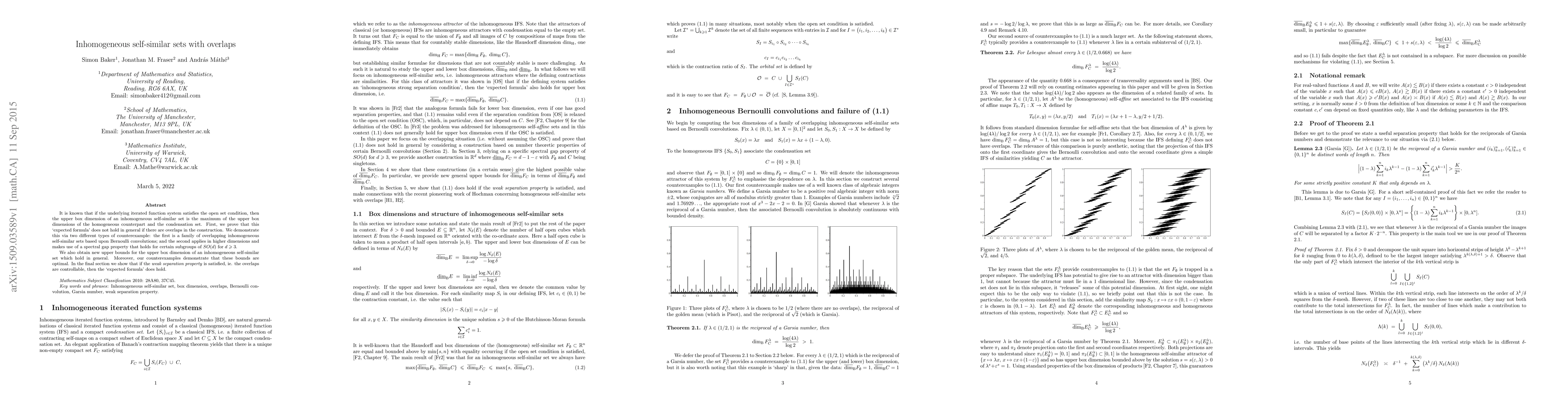 The paper provides rigorous mathematical proofs and counterexamples to establish the behavior of upper box dimensions in inhomogeneous self-similar sets with overlaps, contributing to the theoretical understanding of fractal geometry.