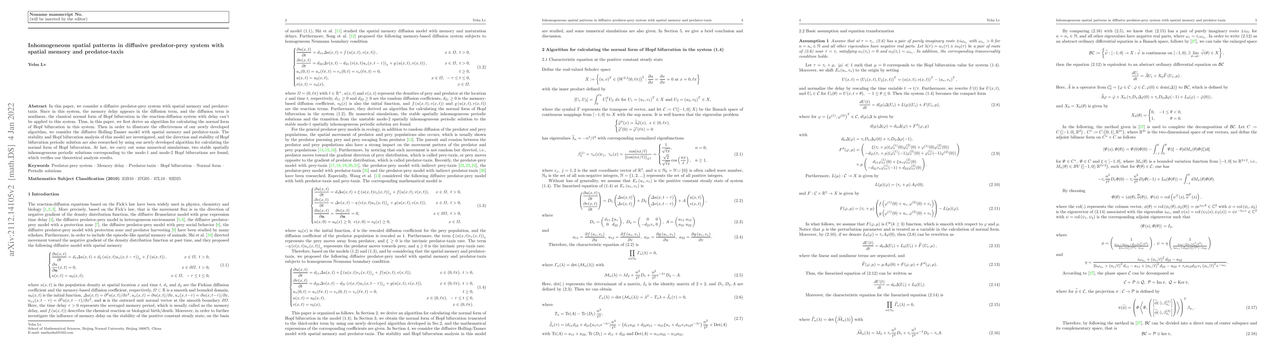 This paper develops a new algorithm for calculating the normal form of Hopf bifurcation in a diffusive predator-prey system with spatial memory and predator-taxis. The algorithm is applied to the Holling-Tanner model, revealing stable spatially inhomogeneous periodic solutions and verifying the theoretical analysis through numerical simulations.