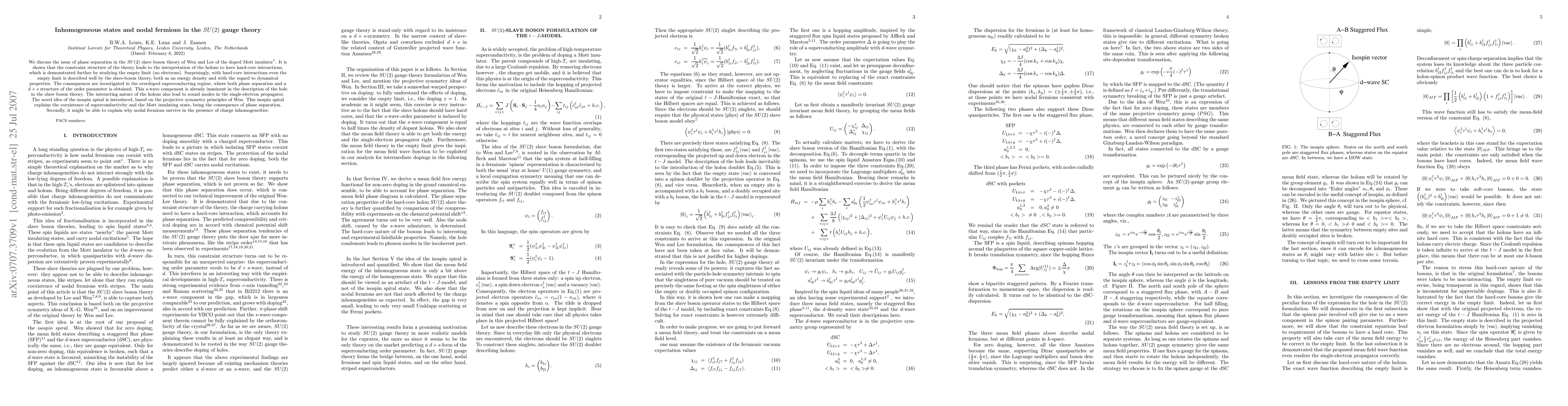 We discuss the issue of phase separation in the SU(2) slave boson theory of Wen and Lee of the doped Mott insulator. It is shown that the constraint structure of the theory leads to the interpretation of the holons to have hard-core interactions, which is demonstrated further by studying the empty limit (no electrons). Surprisingly, with hard-core interactions even the empty limit is described well by the slave-boson theory, both as an energy density and with the regard to dynamical properties. The consequences are investigated in the overdoped superconducting regime, where both phase separation and a d+s structure of the order parameter is obtained. This s-wave component is already imminent in the description of the hole in the slave boson theory. The interacting nature of the holons also lead to sound modes in the single-electron propagator. The novel idea of the isospin spiral is introduced, based on the projective symmetry principles of Wen. This isospin spiral explains the coexistence of superconductivity and the Mott insulating state, being the consequence of phase separation. Secondly, it might be able to explain why nodal fermions survive in the presence of charge inhomogeneities.