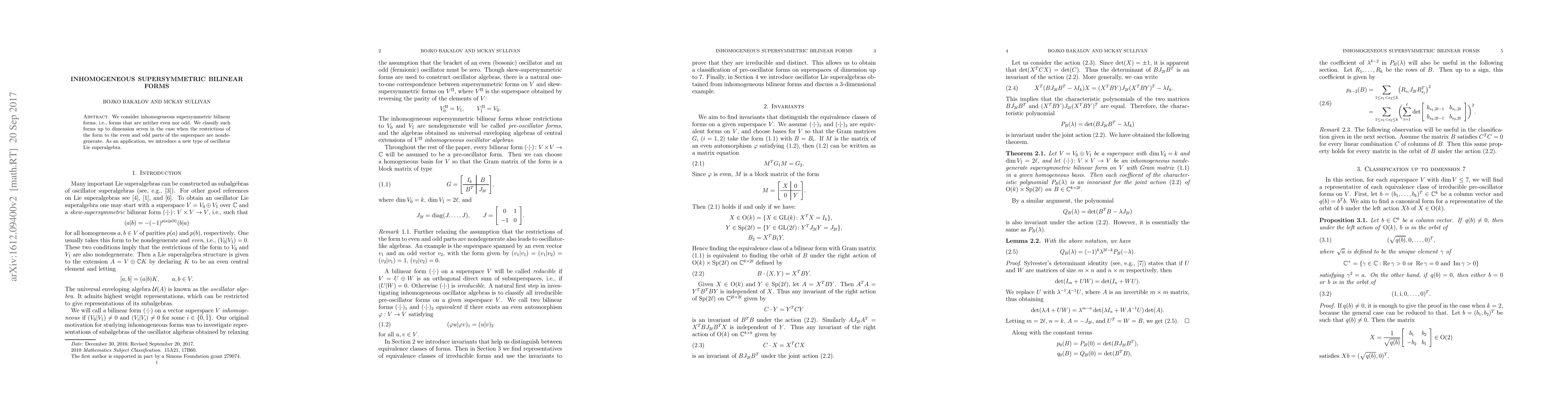 We consider inhomogeneous supersymmetric bilinear forms, i.e., forms that are neither even nor odd. We classify such forms up to dimension seven in the case when the restrictions of the form to the even and odd parts of the superspace are nondegenerate. As an application, we introduce a new type of oscillator Lie superalgebra.