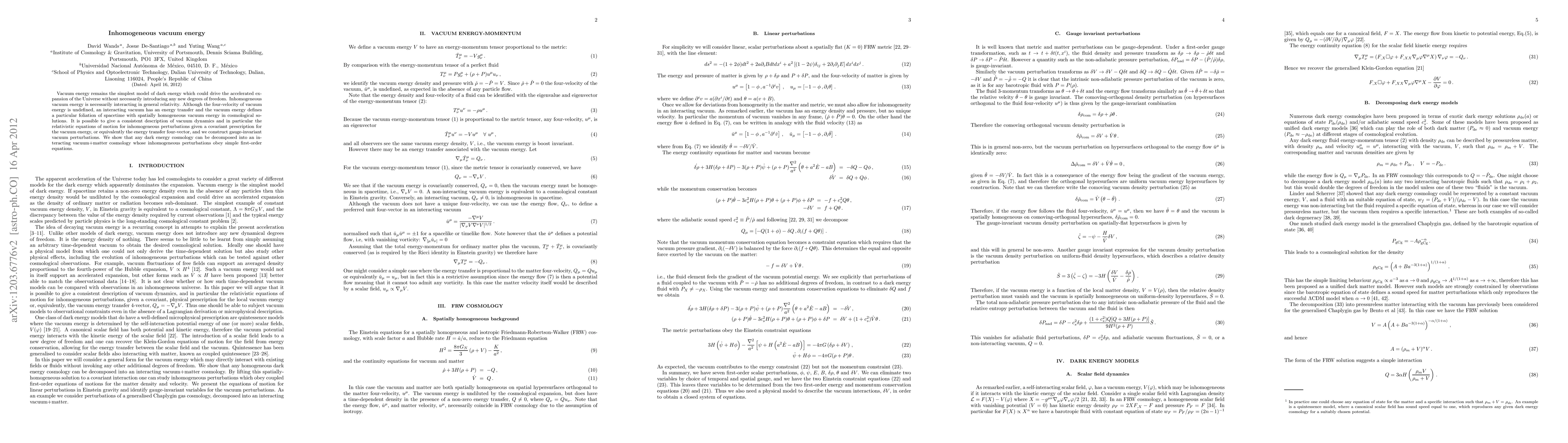 Vacuum energy remains the simplest model of dark energy which could drive the accelerated expansion of the Universe without necessarily introducing any new degrees of freedom. Inhomogeneous vacuum energy is necessarily interacting in general relativity. Although the four-velocity of vacuum energy is undefined, an interacting vacuum has an energy transfer and the vacuum energy defines a particular foliation of spacetime with spatially homogeneous vacuum energy in cosmological solutions. It is possible to give a consistent description of vacuum dynamics and in particular the relativistic equations of motion for inhomogeneous perturbations given a covariant prescription for the vacuum energy, or equivalently the energy transfer four-vector, and we construct gauge-invariant vacuum perturbations. We show that any dark energy cosmology can be decomposed into an interacting vacuum+matter cosmology whose inhomogeneous perturbations obey simple first-order equations.