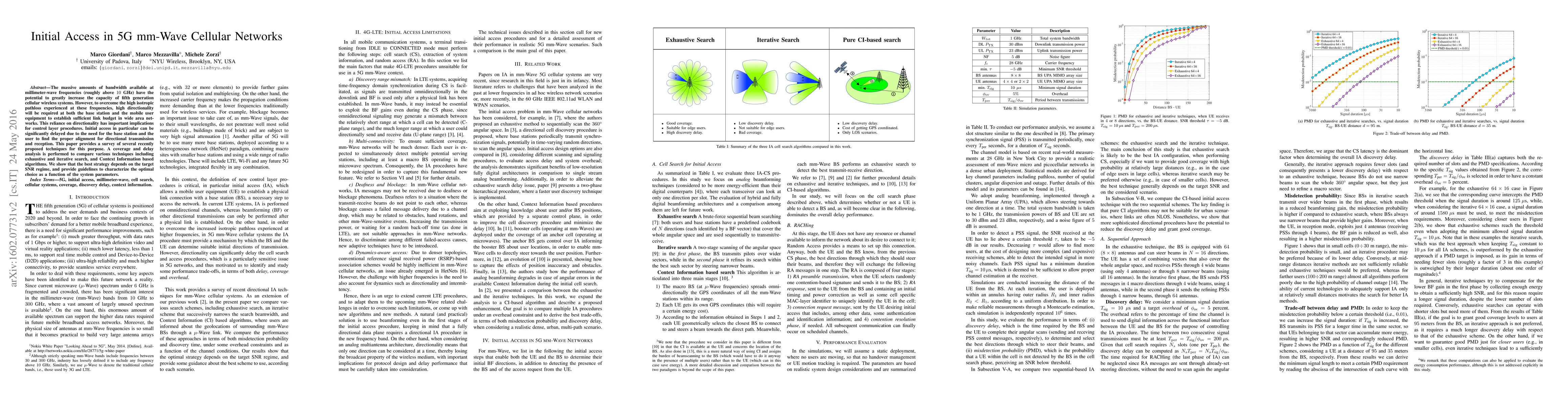 This paper surveys techniques for initial access in 5G mm-Wave networks, highlighting the challenges of high pathloss and the need for directional transmission. It analyzes various alignment methods, showing that the optimal strategy depends on the target SNR regime and system parameters.