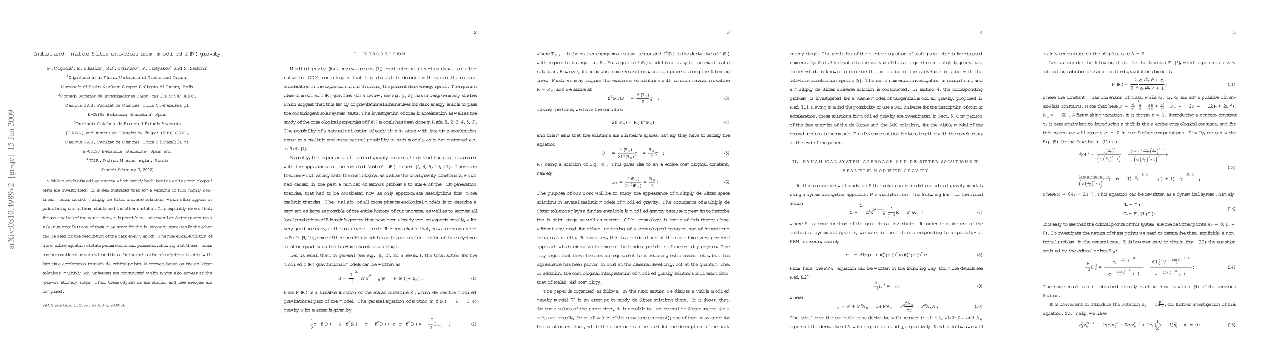 This paper explores modified $f(R)$ gravity models that satisfy both local and cosmological tests, demonstrating that they can exhibit multiple de Sitter solutions, potentially unifying early-time inflation with late-time dark energy acceleration. Numerically, it finds that certain parameter values allow for several de Sitter spaces, with one serving as an inflationary stage and the other describing the dark energy epoch.