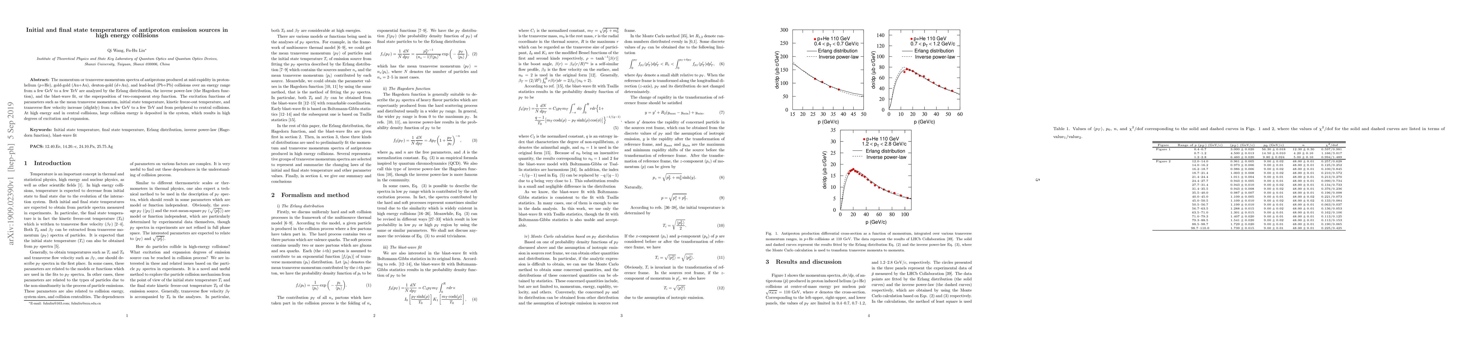 This paper analyzes antiproton spectra in various high-energy collisions using different theoretical models to determine initial and final state temperatures. Results show increasing excitation functions and higher temperatures with increasing collision energy and centrality.