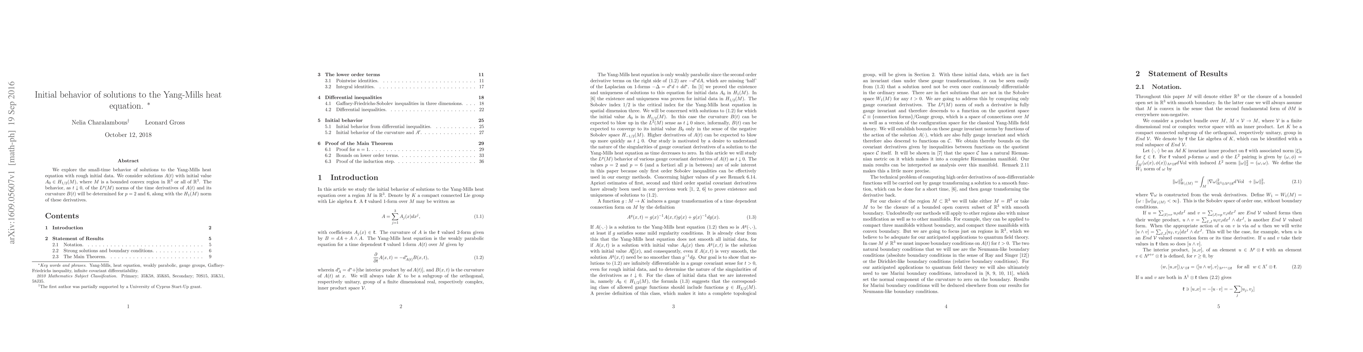 We explore the small-time behavior of solutions to the Yang-Mills heat equation with rough initial data. We consider solutions $A(t)$ with initial value $A_0\in H_{1/2}(M)$, where $M$ is a bounded convex region in $\mathbb{R}^3$ or all of $\mathbb{R}^3$. The behavior, as $t\downarrow 0$, of the $L^p(M)$ norms of the time derivatives of $A(t)$ and its curvature $B(t)$ will be determined for $p=2$ and $6$, along with the $H_1(M)$ norm of these derivatives.