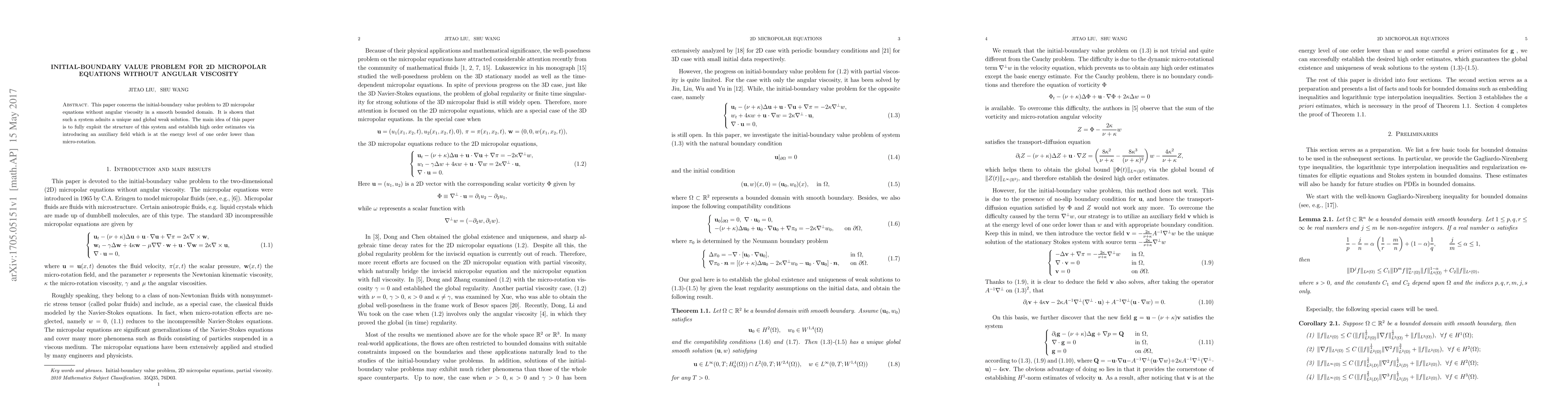 This paper investigates the initial-boundary value problem for 2D micropolar equations without angular viscosity, demonstrating the existence of a unique and global weak solution. The authors achieve this by leveraging the system's structure and employing an auxiliary field to derive high-order estimates.