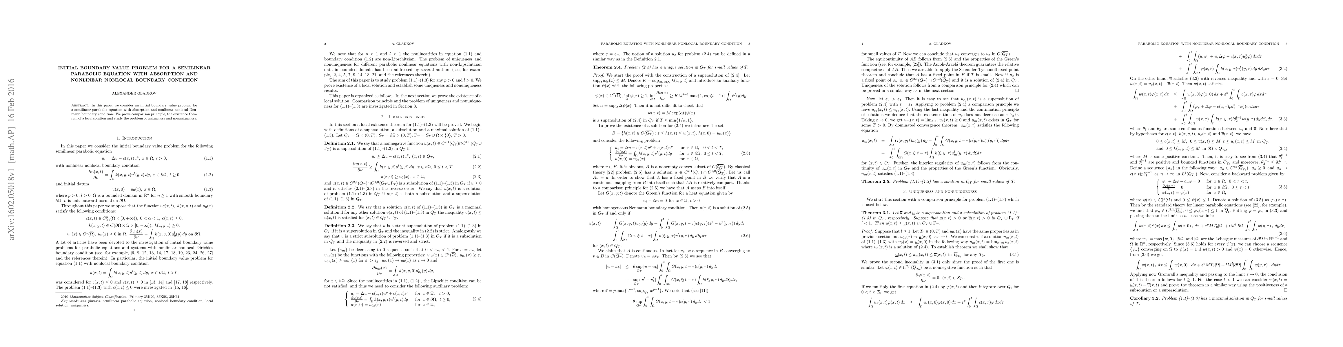 This research examines an initial boundary value problem for a semilinear parabolic equation featuring absorption and a nonlinear nonlocal Neumann boundary condition, proving a comparison principle and the existence of a local solution, while also exploring uniqueness and nonuniqueness issues.