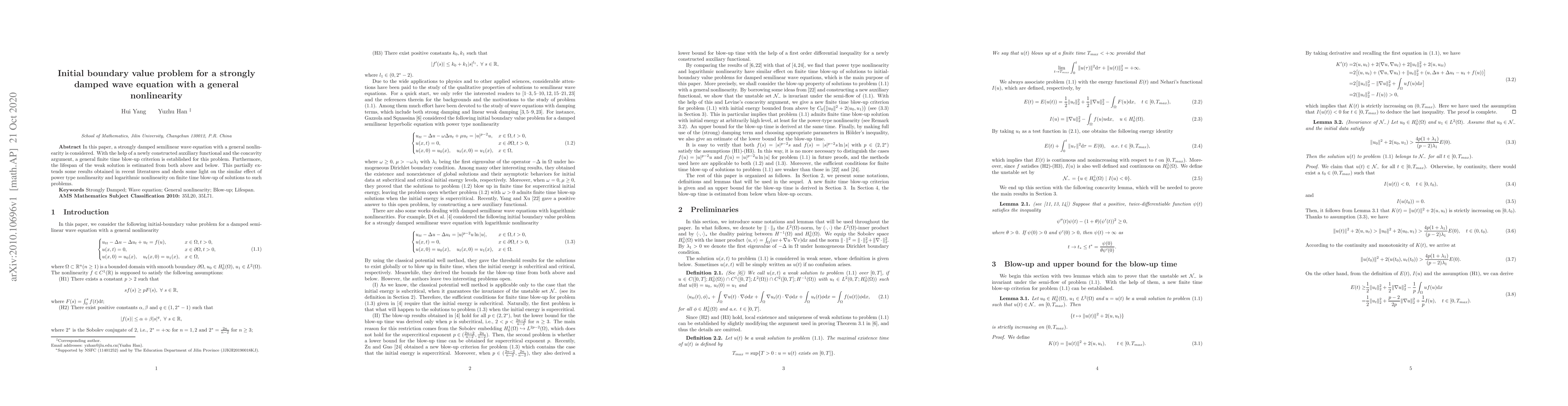 This paper investigates a strongly damped wave equation with general nonlinearity, establishing a finite time blow-up criterion using a new auxiliary functional and concavity argument. It also estimates the lifespan of weak solutions and extends previous results on the effect of different nonlinearities on solution blow-up.