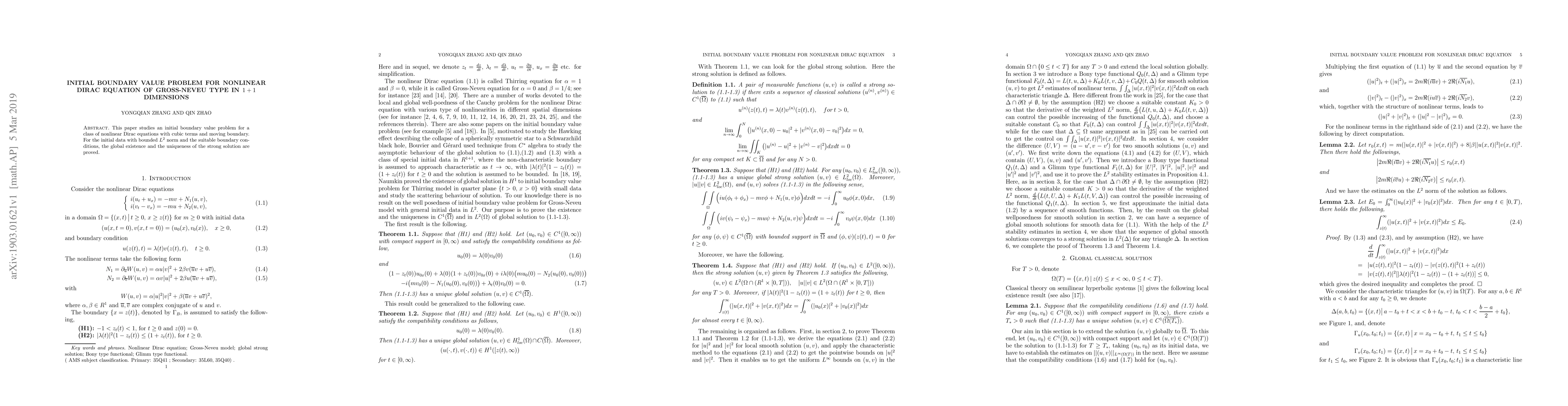 This paper studies an initial boundary value problem for a class of nonlinear Dirac equations with cubic terms and moving boundary. For the initial data with bounded $L^2$ norm and the suitable boundary conditions, the global existence and the uniqueness of the strong solution are proved.