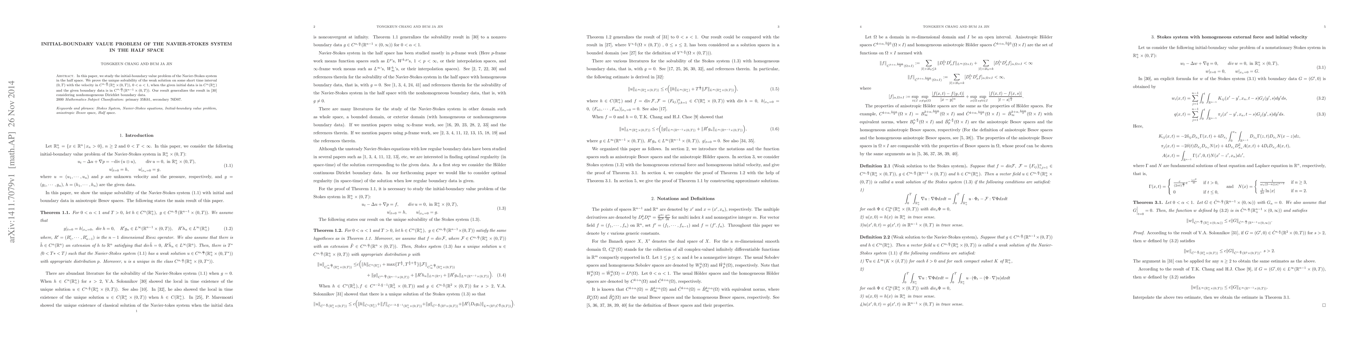 In this paper, we study the initial-boundary value problem of the Navier-Stokes system in the half space. We prove the unique solvability of the weak solution on some short time interval (0, T) with the velocity in $C^{\alpha, \frac12 \alpha} ({\mathbb R}^n_+ \times (0, T)), 0 < \alpha < 1$, when the given initial data is in $C^\alpha ({\mathbb R}^n_+)$ and the given boundary data is in $C^{\alpha, \frac12 \alpha} ({\mathbb R}^{n-1} \times (0, T))$. Our result generalizes the result in [30] considering nonhomogeneous Dirichlet boundary data.