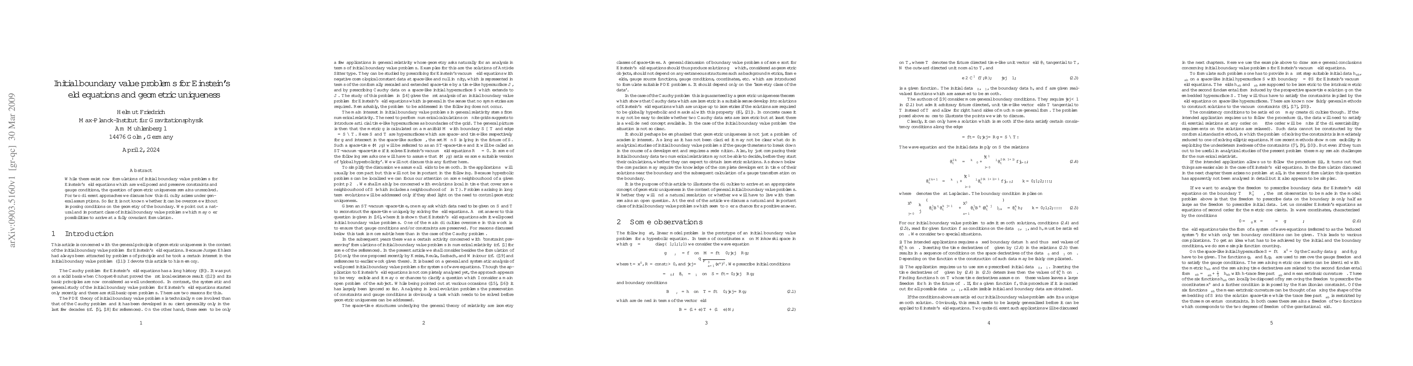 This paper explores the unresolved issue of geometric uniqueness in initial boundary value problems for Einstein's field equations, highlighting the challenges in two different approaches and suggesting a class of problems that might lead to a fully covariant formulation. The necessity of boundary geometry conditions for overcoming this issue remains uncertain.