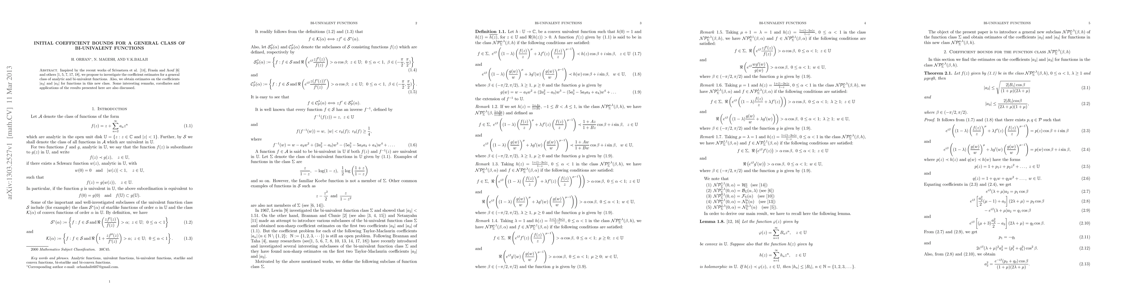 This paper investigates coefficient estimates for a new class of analytic and bi-univalent functions, deriving initial bounds for the coefficients |a2| and |a3| and discussing related remarks, corollaries, and applications. The study builds on recent works by various researchers in the field.
