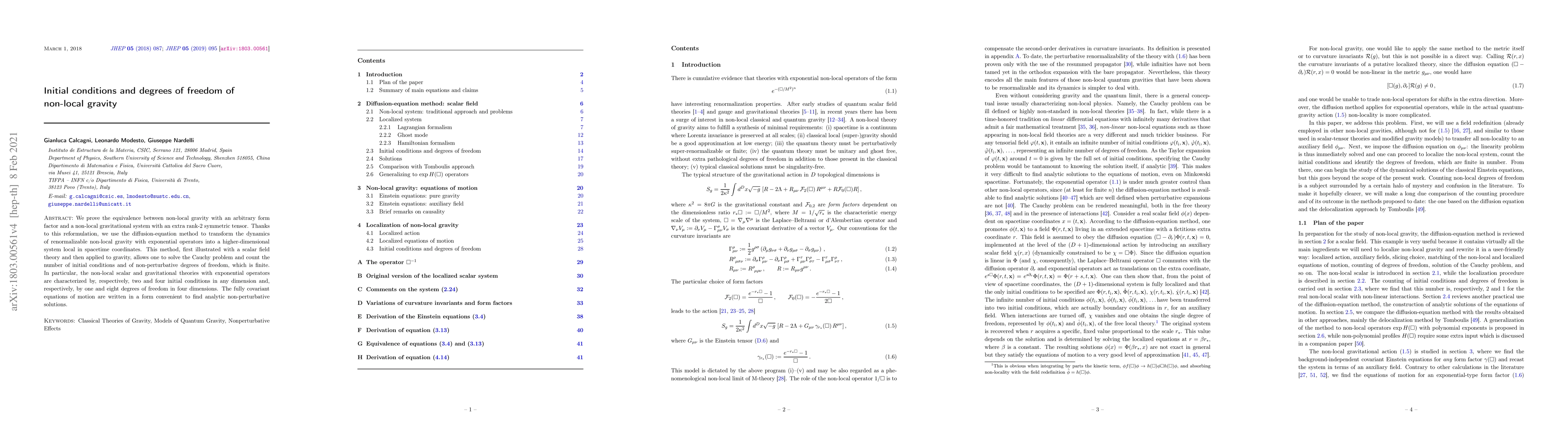 This paper demonstrates the equivalence between non-local gravity and a system with an extra rank-2 tensor, enabling the use of a diffusion-equation method to solve the Cauchy problem. It reveals finite initial conditions and degrees of freedom for non-local scalar and gravitational theories, with two and four initial conditions and one and eight degrees of freedom respectively in four dimensions.