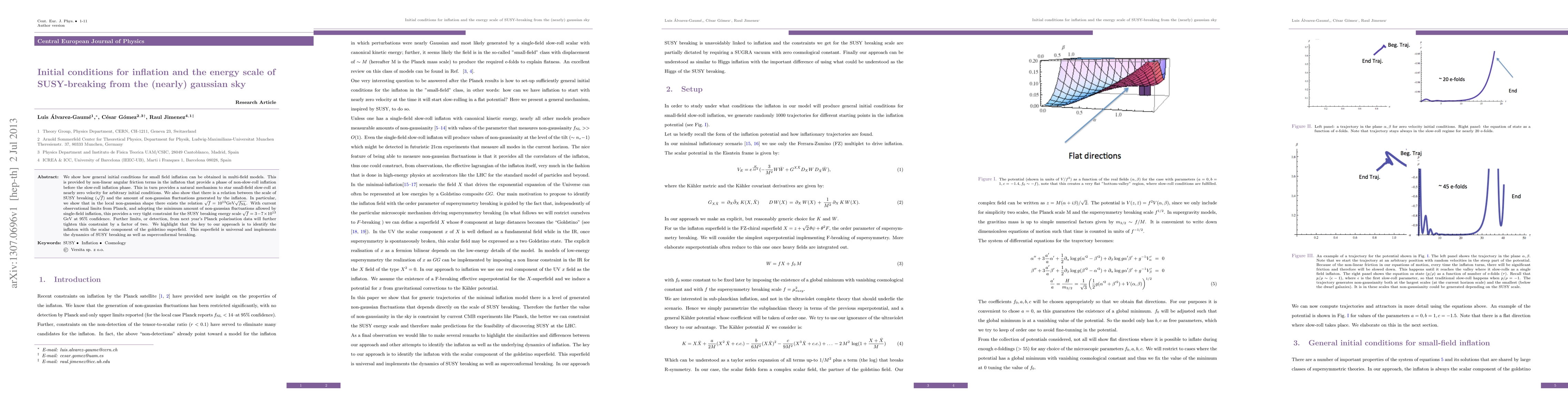 We show how general initial conditions for small field inflation can be obtained in multi-field models. This is provided by non-linear angular friction terms in the inflaton that provide a phase of non-slow-roll inflation before the slow-roll inflation phase. This in turn provides a natural mechanism to star small-field slow-roll at nearly zero velocity for arbitrary initial conditions. We also show that there is a relation between the scale of SUSY breaking sqrt (f) and the amount of non-gaussian fluctuations generated by the inflaton. In particular, we show that in the local non-gaussian shape there exists the relation sqrt (f) = 10^{13} GeV sqrt (f_NL). With current observational limits from Planck, and adopting the minimum amount of non-gaussian fluctuations allowed by single-field inflation, this provides a very tight constraint for the SUSY breaking energy scale sqrt (f) = 3-7 x 10^{13} GeV at 95% confidence. Further limits, or detection, from next year's Planck polarisation data will further tighten this constraint by a factor of two. We highlight that the key to our approach is to identify the inflaton with the scalar component of the goldstino superfield. This superfield is universal and implements the dynamics of SUSY breaking as well as superconformal breaking.