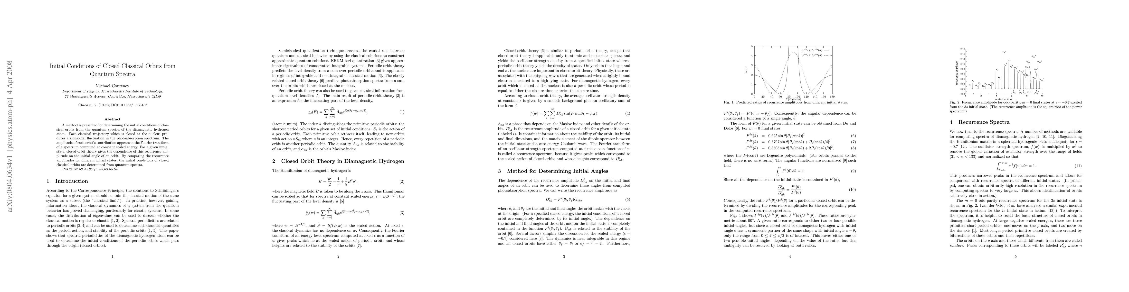 A method is presented for determining the initial conditions of classical orbits from the quantum spectra of the diamagnetic hydrogen atom. Each classical trajectory which is closed at the nucleus produces a sinusoidal fluctuation in the photoabsorption spectrum. The amplitude of each orbit's contribution appears in the Fourier transform of a spectrum computed at constant scaled energy. For a given initial state, closed-orbit theory gives the dependence of this recurrence amplitude on the initial angle of an orbit. By comparing the recurrence amplitudes for different initial states, the initial conditions of closed classical orbits are determined from quantum spectra.
