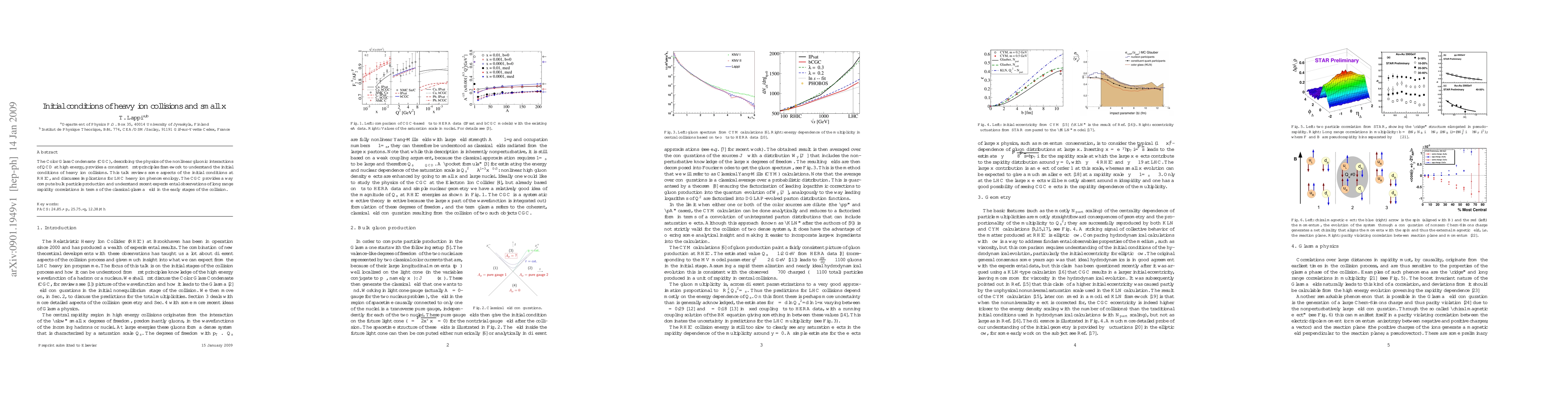 This paper reviews the Color Glass Condensate (CGC) framework for understanding the initial conditions of heavy ion collisions at high energy, particularly at RHIC, and discusses its implications for future LHC experiments, including the computation of bulk particle production and the interpretation of long-range rapidity correlations.
