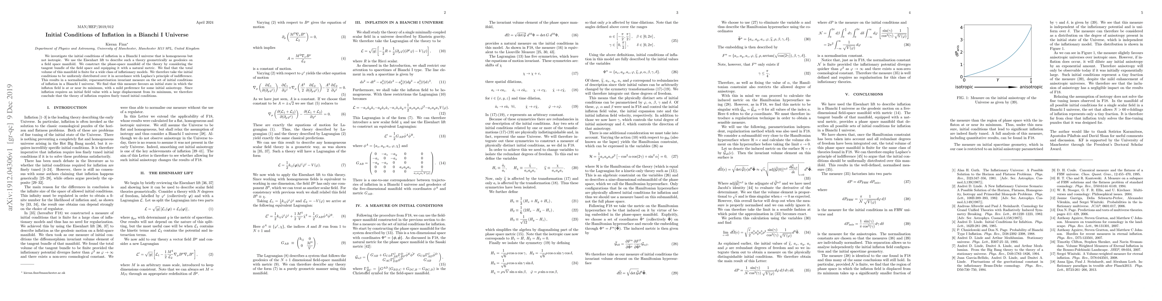 The paper introduces a geometric approach using the Eisenhart lift to describe inflation in a Bianchi I universe and constructs a well-defined measure on the initial conditions of inflation, accounting for symmetries and redundancies.