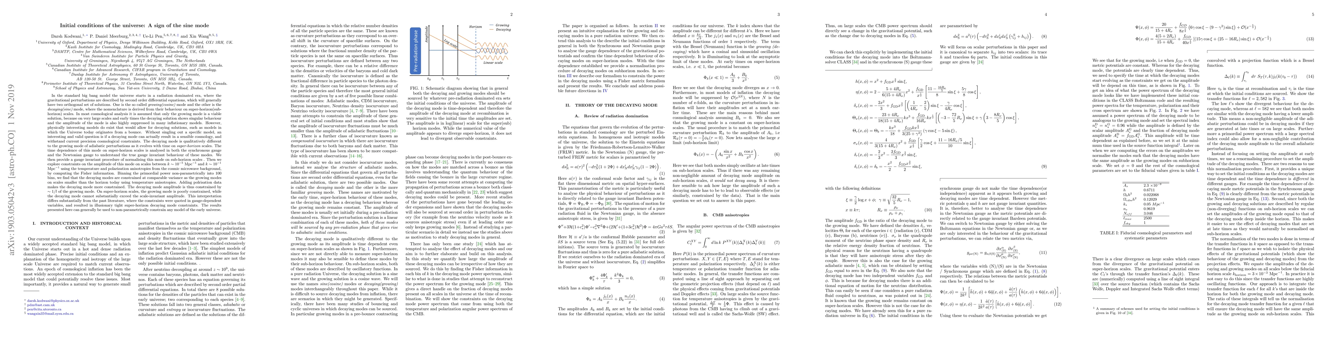 In the standard big bang model the universe starts in a radiation dominated era, where the gravitational perturbations are described by second order differential equations, which will generally have two orthogonal set of solutions. One is the so called {\it growing(cosine)} mode and the other is the {\it decaying(sine)} mode, where the nomenclature is derived from their behaviour on super-horizon(sub-horizon) scales. The decaying mode is qualitatively different to the growing mode of adiabatic perturbations as it evolves with time on \emph{super-horizon} scales. The time dependence of this mode on super-horizon scales is analysed in both the synchronous gauge and the Newtonian gauge to understand the true gauge invariant behaviour of these modes. We then explore constraints on the amplitude of this mode on scales between $k \sim 10^{-5}$ Mpc$^{-1}$ and $k \sim 10^{-1}$ Mpc$^{-1}$ using the temperature and polarization anisotropies from the cosmic microwave background, by computing the Fisher information. Binning the primordial power non-parametrically into 100 bins, we find that the decaying modes are constrained at comparable variance as the growing modes on scales smaller than the horizon today using temperature anisotropies. Adding polrisation data makes the decaying mode more constrained. The decaying mode amplitude is thus constrained by $\sim 1/l$ of the growing mode. On super-horizon scales, the growing mode is poorly constrained, while the decaying mode cannot substantially exceed the scale-invariant amplitude. This interpretation differs substantially from the past literature, where the constraints were quoted in gauge-dependent variables, and resulted in illusionary tight super-horizon decaying mode constraints. The results presented here can generally be used to non-parametrically constrain any model of the early universe.