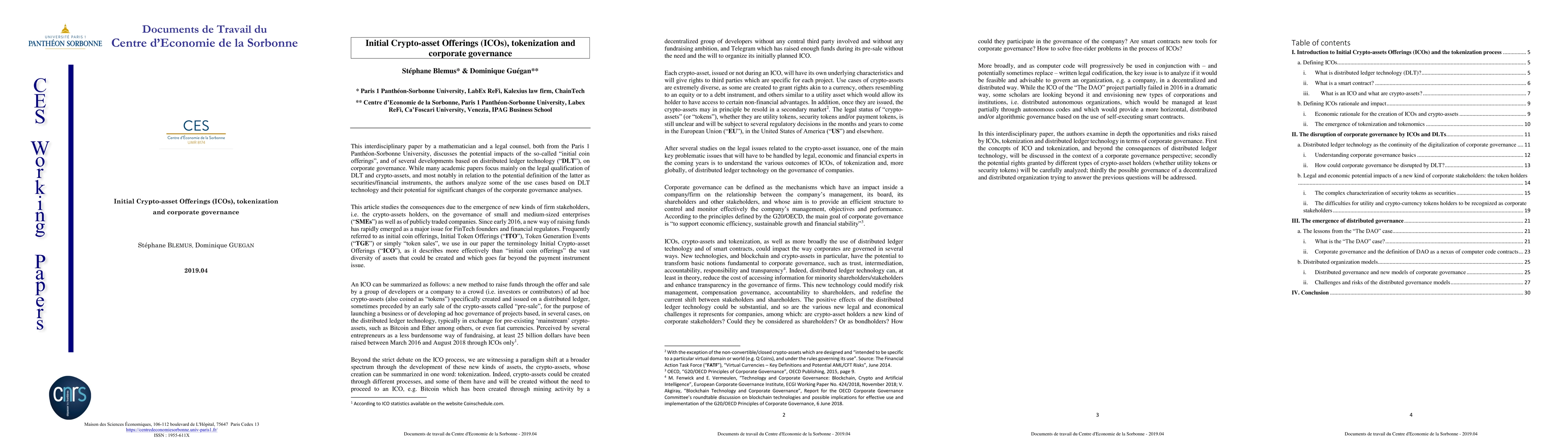 This paper discusses the potential impacts of the so-called `initial coin offerings', and of several developments based on distributed ledger technology (`DLT'), on corporate governance. While many academic papers focus mainly on the legal qualification of DLT and crypto-assets, and most notably in relation to the potential definition of the latter as securities/financial instruments, the authors analyze some of the use cases based on DLT technology and their potential for significant changes of the corporate governance analyses. This article studies the consequences due to the emergence of new kinds of firm stakeholders, i.e. the crypto-assets holders, on the governance of small and medium-sized enterprises (`SMEs') as well as of publicly traded companies. Since early 2016, a new way of raising funds has rapidly emerged as a major issue for FinTech founders and financial regulators. Frequently referred to as initial coin offerings, Initial Token Offerings (`ITO'), Token Generation Events (`TGE') or simply `token sales', we use in our paper the terminology Initial Crypto-asset Offerings (`ICO'), as it describes more effectively than `initial coin offerings' the vast diversity of assets that could be created and which goes far beyond the payment instrument issue.