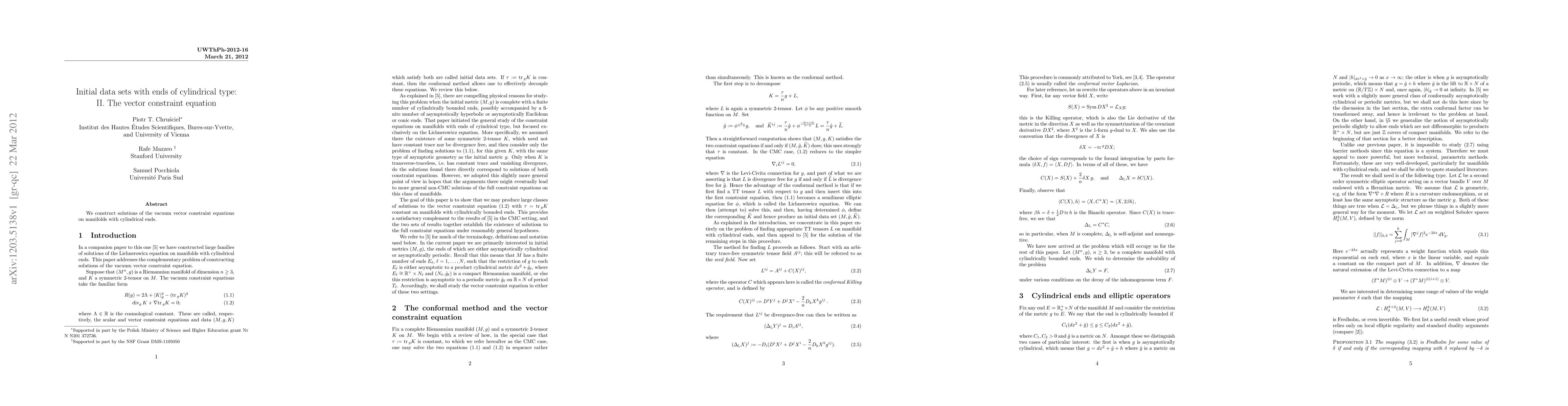 Summary: This paper presents solutions to the vacuum vector constraint equations on manifolds characterized by cylindrical ends, contributing to the understanding of gravitational fields in such geometries.
