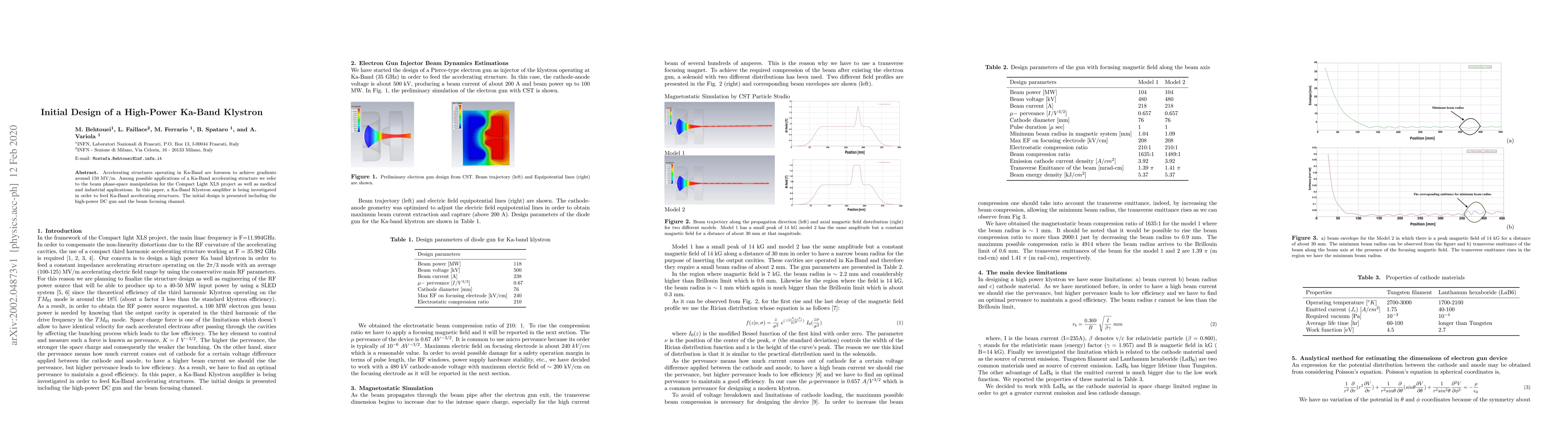 Researchers designed an initial model for a high-power Ka-Band Klystron amplifier to feed accelerating structures, aiming for gradients of 150 MV/m in the Ka-Band frequency range.