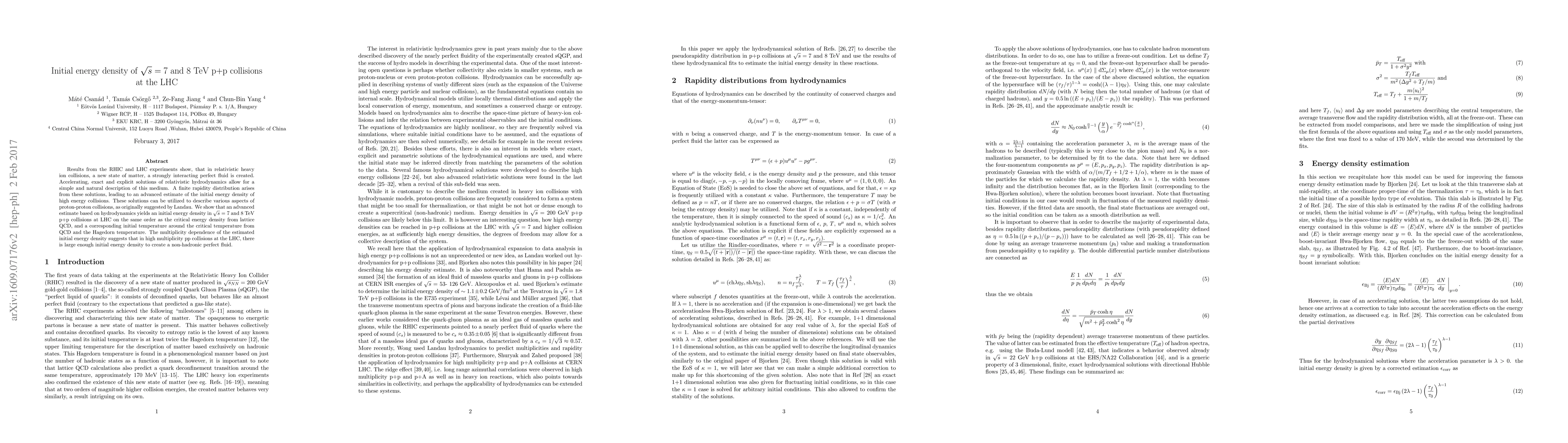 Results from the RHIC and LHC experiments show, that in relativistic heavy ion collisions, a new state of matter, a strongly interacting perfect fluid is created. Accelerating, exact and explicit solutions of relativistic hydrodynamics allow for a simple and natural description of this medium. A finite rapidity distribution arises from these solutions, leading to an advanced estimate of the initial energy density of high energy collisions. These solutions can be utilized to describe various aspects of proton-proton collisions, as originally suggested by Landau. We show that an advanced estimate based on hydrodynamics yields an initial energy density in $\sqrt{s}=7$ and 8 TeV p+p collisions at LHC on the same order as the critical energy density from lattice QCD, and a corresponding initial temperature around the critical temperature from QCD and the Hagedorn temperature. The multiplicity dependence of the estimated initial energy density suggests that in high multiplicity pp collisions at the LHC, there is large enough initial energy density to create a non-hadronic perfect fluid.