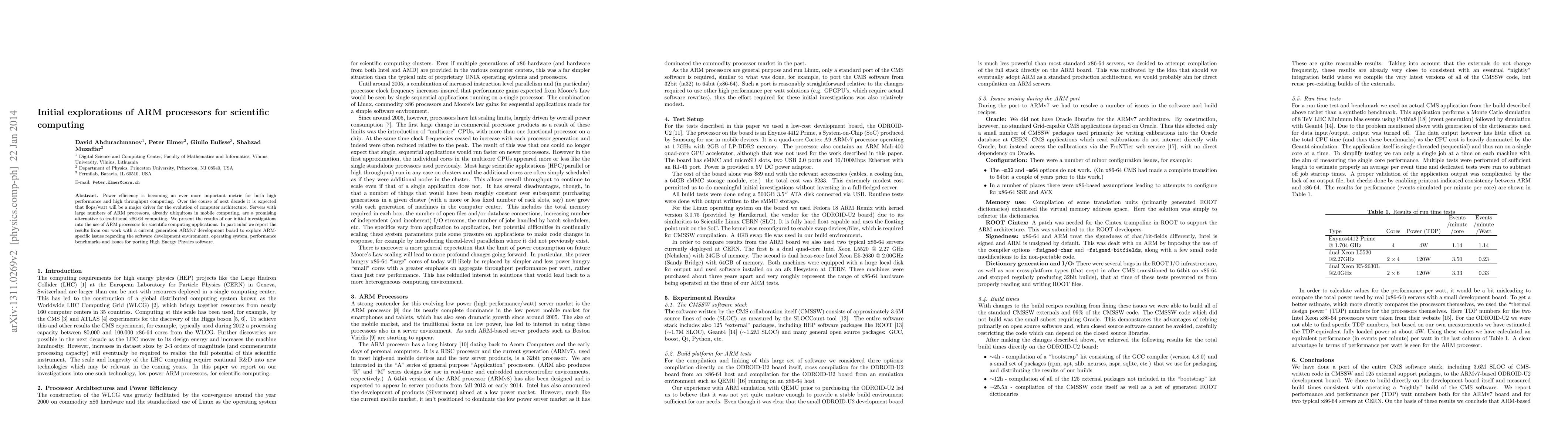 This paper explores the potential of ARM processors for scientific computing, focusing on power efficiency and performance. Initial investigations using an ARMv7 development board reveal insights into software development, operating system compatibility, and performance benchmarks for porting High Energy Physics applications.