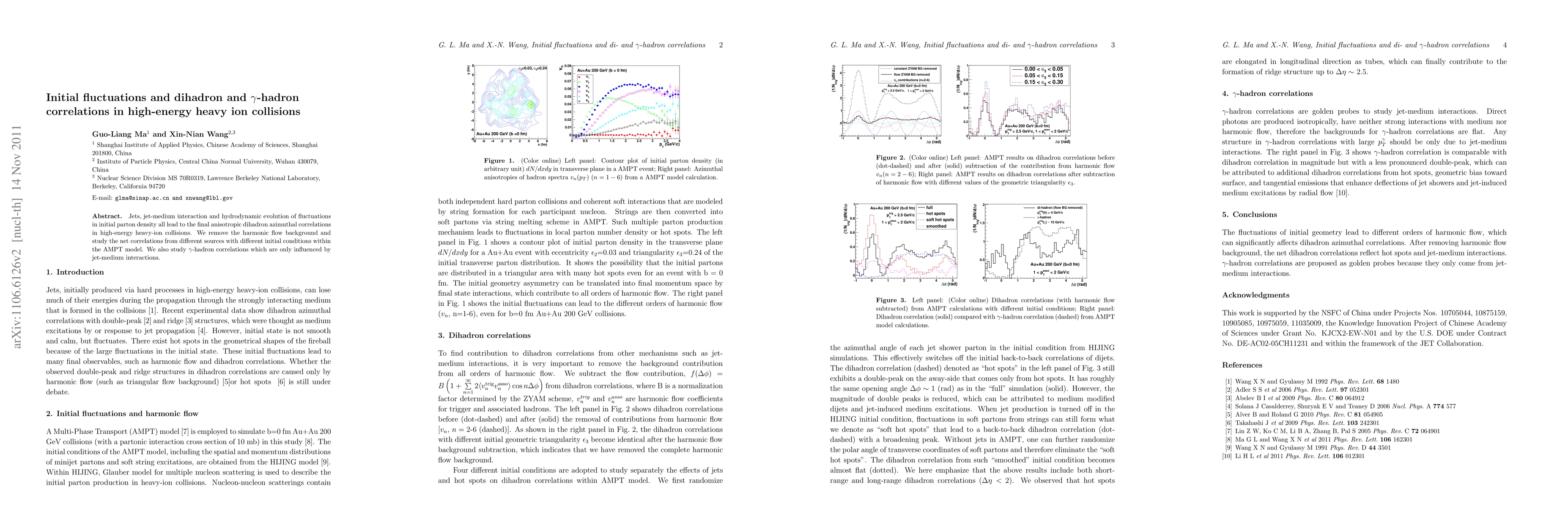 Jets, jet-medium interaction and hydrodynamic evolution of fluctuations in initial parton density all lead to the final anisotropic dihadron azimuthal correlations in high-energy heavy-ion collisions. We remove the harmonic flow background and study the net correlations from different sources with different initial conditions within the AMPT model. We also study $\gamma$-hadron correlations which are only influenced by jet-medium interactions.