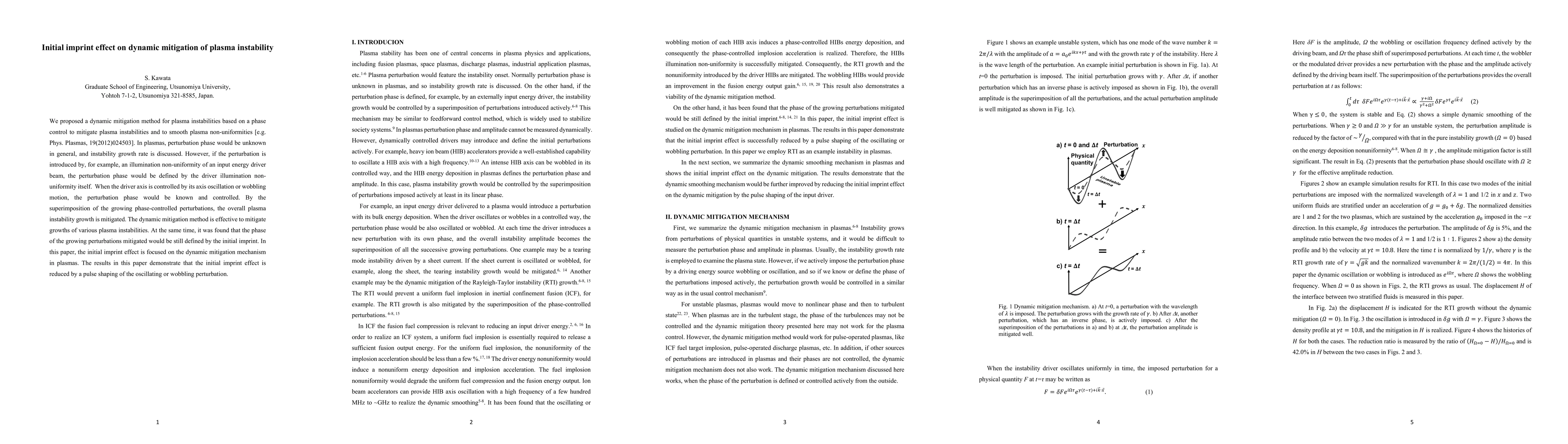 This paper proposes a dynamic method for mitigating plasma instabilities through phase-controlled perturbations, showing that initial imprint effects can be reduced via pulse shaping of the oscillating perturbation, thus effectively smoothing plasma non-uniformities.